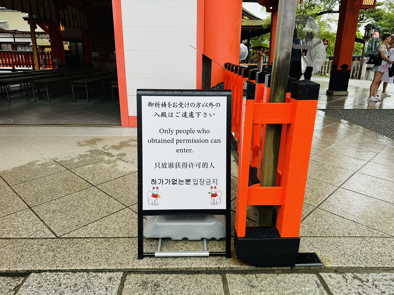 5. 여우신사로도 불리는 후시미 이나리 신사에 방문했을 때의 일이에요. 누나가 신사를 관리하는 신쇼쿠와 대화를 나누셨는데, 전말은 이랬습니다. 일본에는 한국 관광객들이 많은 만큼, 표지판에 한국어를 자주 볼 수 있아요. 그런데 표지판에 오타가 있었던 거예요.