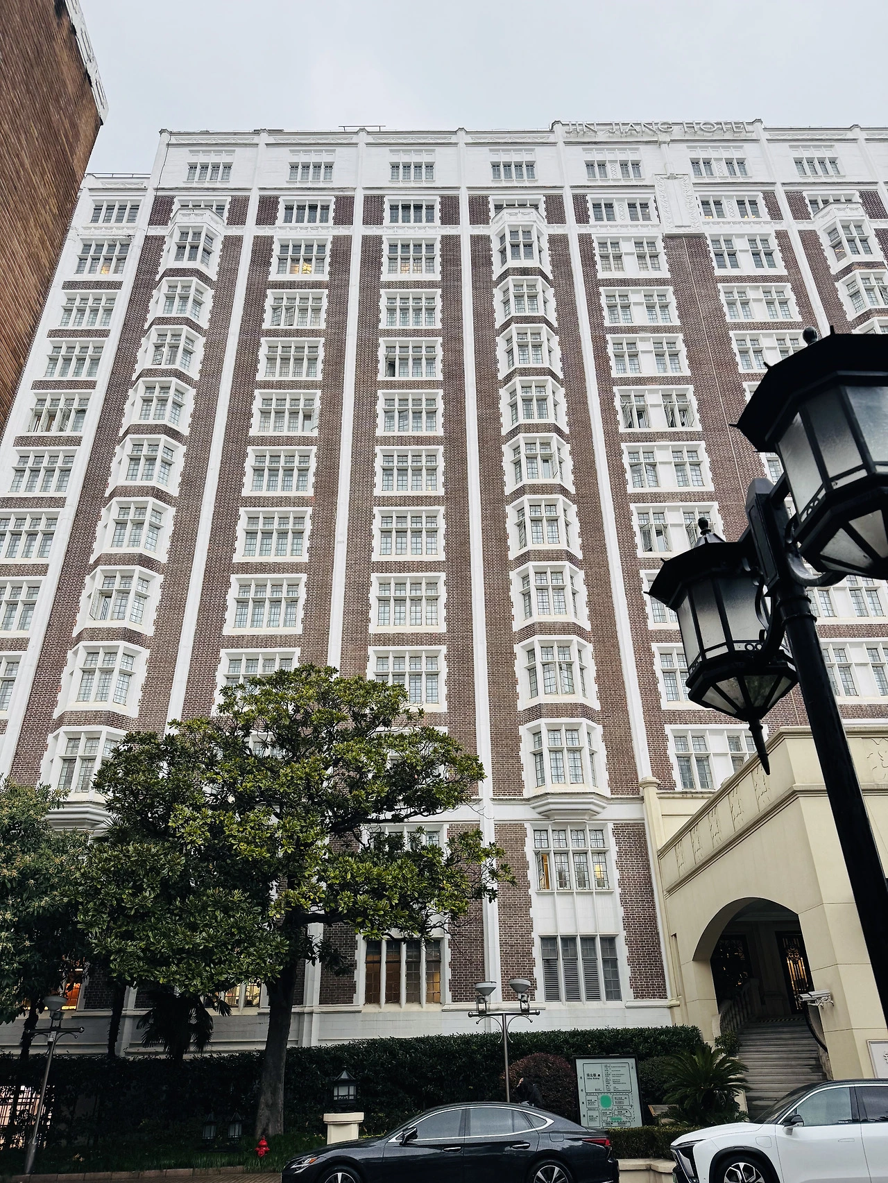 진장 호텔(Jin Jiang Hotel)은 중국에서 가장 규모가 큰 국영 호텔 체인에 속한 호텔입니다. 중국에 오래 머무르시다 보면, 등급과 형태가 다양한 진장 호텔들을 곳곳에서 보게 됩니다. 이곳은 그중에서도 가장 오래된 최초의 진장 호텔로, 1926년에 유대계 사업가 빅터 사순(Victor Sassoon)에 의해 지어졌습니다. 피스 호텔을 지은 바로 그 인물이죠. 이 호텔에는 많은 유명 인사들이 머물렀습니다.