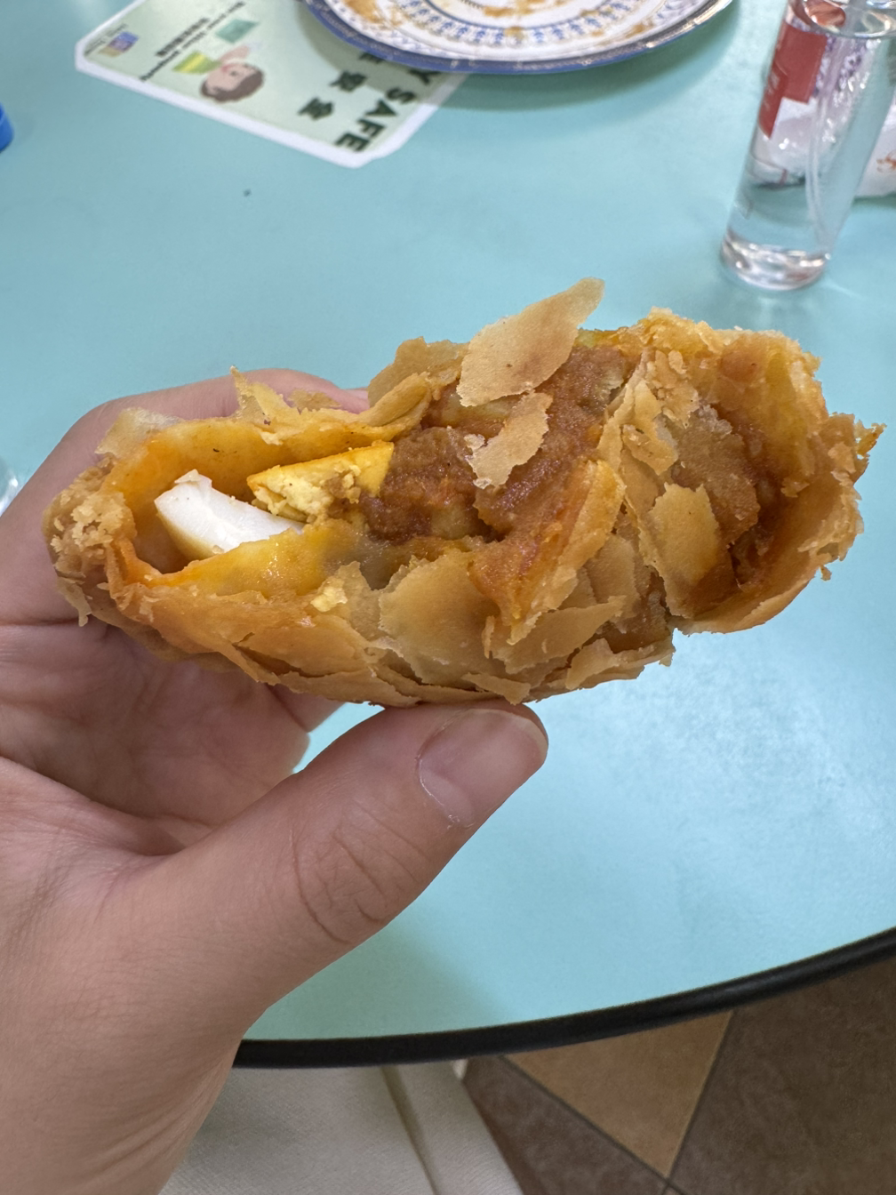 커리 퍼프 (Curry Puff): 감자와 고기 혹은 계란을 넣은 커리를 채워 만든 작은 파이