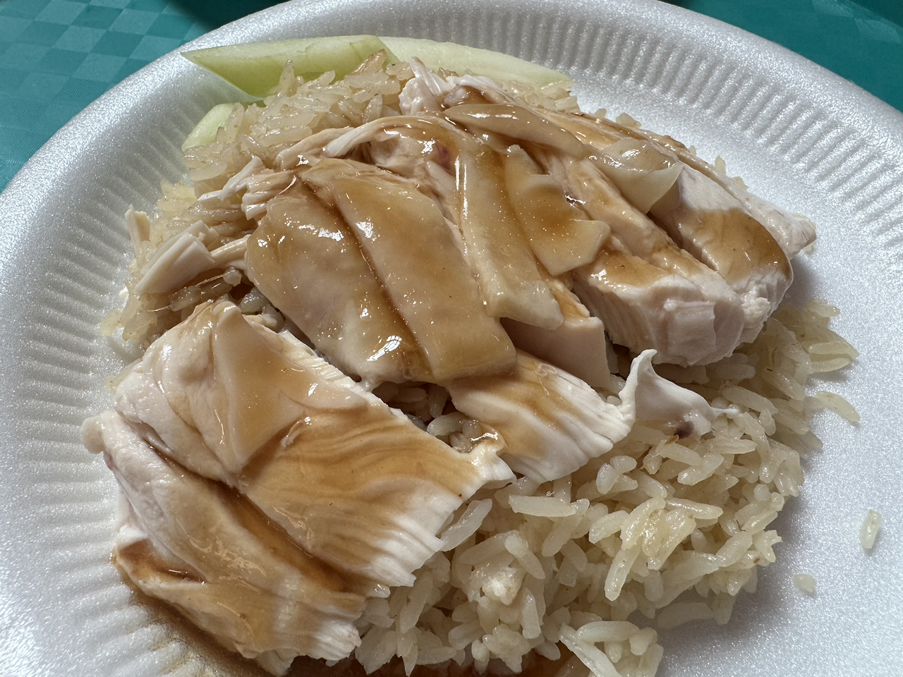 싱가포르 스타일 치킨라이스 조리법은 중국 남부 하이난에서 유래되었습니다. 닭고기를 끓는 물에 삶은 다음 냉수에 담가 육질을 부드럽게 만듭니다. 요리의 성패를 좌우하는 것은 쌀과 칠리소스입니다. 쌀은 치킨 스톡에 생강과 판단 잎을 넣고 적절한 양의 기름과 함께 조리해서 향이 아주 좋습니다. 그리고 매운맛과 시큼한 맛이 적절히 조화를 이루는 칠리 페이스트로 요리를 완성합니다.