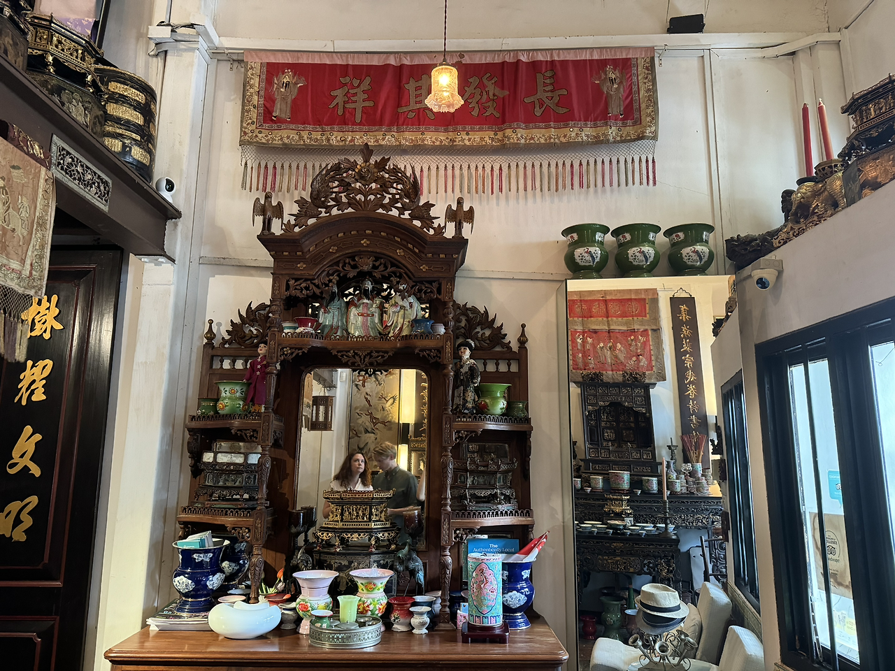음식을 판매하는 곳 옆쪽에는 부티크 갤러리가 위치하고 있어요. 페라나칸 식기, 비즈로 만든 신발, 전통 페라나칸 드레스인 케바야, 공예품 등을 판매하고 있고, 의복은 맞춤 제작도 가능하다고 합니다. 케바야는 싱가포르 총리의 부인이 중요 행사 때마다 착용하는 의상이고, 싱가포르 항공 승무원들이 입고 있는 의복이기도 합니다.