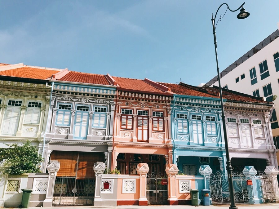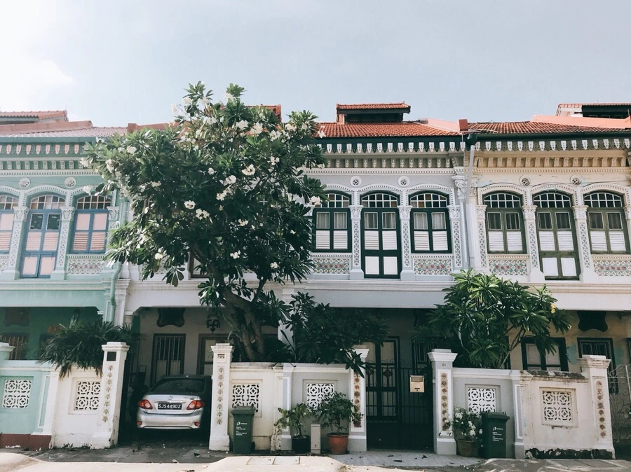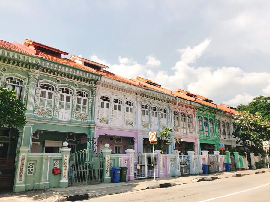 페라나칸 가옥이 가장 잘 보존된 곳은 주치앗 로드에서 쿤셍 로드 (Koon Seng Road) 쪽으로 빠지는 곳에 있는 페라나칸 하우스입니다. 1920년대 지어진 2층 집들로 대문 안에 작은 마당이 있고, 문 앞 기둥을 장식한 다채로운 타일들이 특징입니다. 전체적인 기둥과 창문은 유럽에서 영감을 받았고, 대문 안에 마당과 문 앞 기둥은 중국의 영향을 받았습니다. 싱가포르 전통책자에 늘 빠지지 않고 들어가는 공간으로 이국적이고 화려한 느낌, 알록달록한 색감 덕분에 많은 사람들에게 사랑받는 곳입니다.