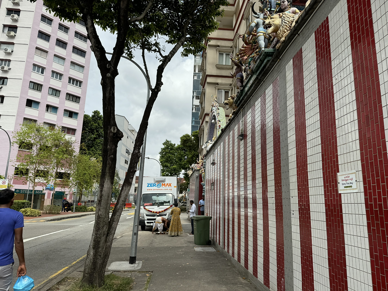 큰 꿈을 품고 이국땅에 왔지만 불안하고 걱정되는 마음이 분명히 있었을 거예요. 그래서 인도 사람들은 리틀인디아 중심부에 악을 파괴하는 여신인 칼리를 모시는 사원을 짓습니다. 1855년 지어진 사원이고, 칼리 조각상은 인도에서 가지고 왔다고 해요. 제2차 세계대전 중에 일본군이 공습해 왔을 때, 인도계 사람들은 칼리의 보호를 기원하며 이 사원에 숨어있었다고 해요. 실제로 사원과 사원 내 모든 조각들은 폭격을 받지 않고 무사히 살아남았습니다.