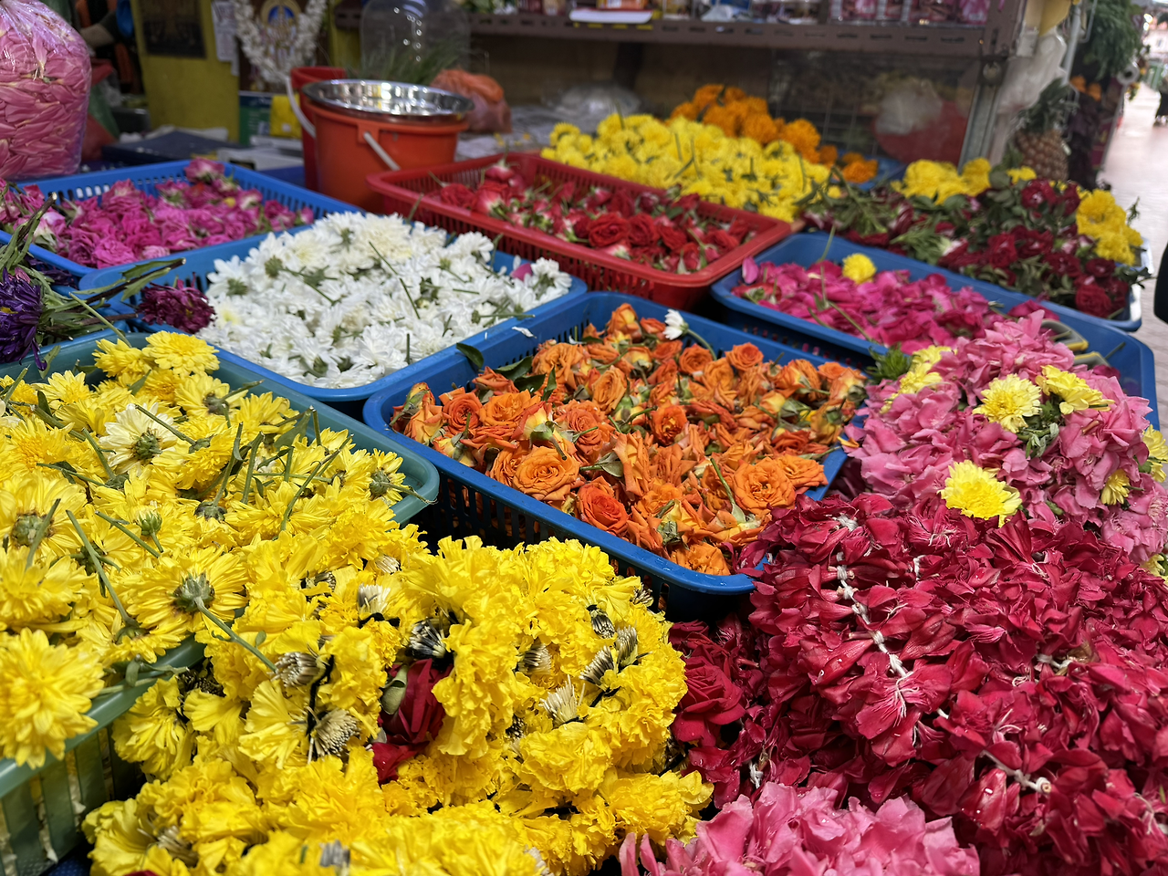 리틀인디아 곳곳에서는 생화를 팔고 있는 꽃 가게들이 많습니다. 우리에게 익숙한 꽃가게와는 달리 줄기 부분을 짧게 잘라서 전시해두고 있어요. 힌두 사원에 가기 전에 꽃들을 엮어서 가느다란 줄에 엮어서 목걸이처럼 만들기도 합니다. 가랜드라고 부르는데요, 존경과 긍정적인 에너지를 의미한다고 합니다. 색깔별로 다른 의미를 가지고 있어요.
