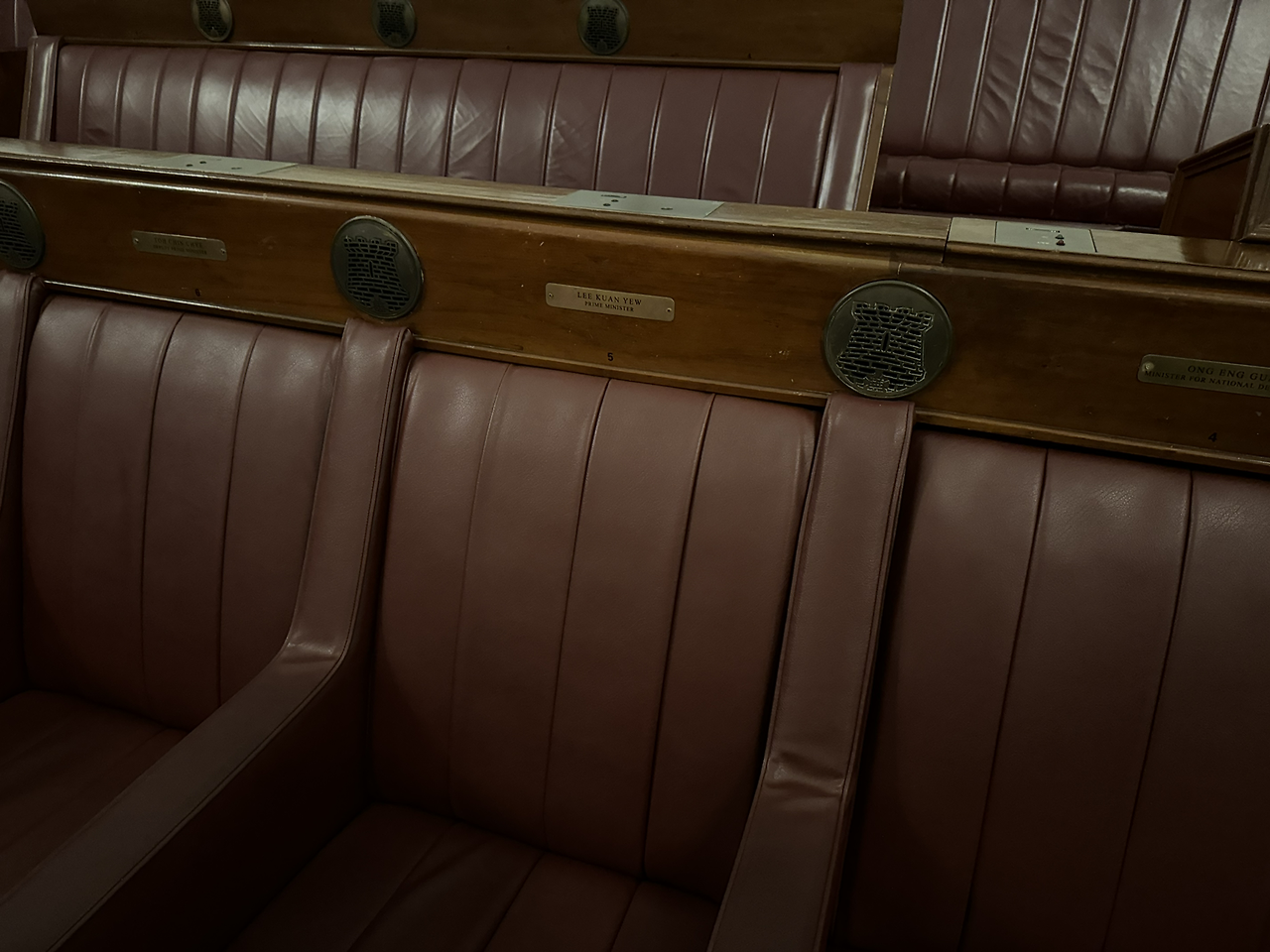 왼쪽 여당 좌석의 의자를 잘 살펴보면 리콴유의 의자도 찾아볼 수 있어요.