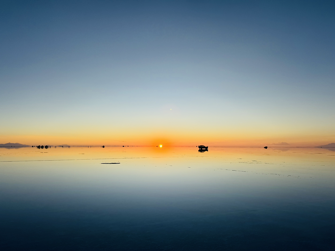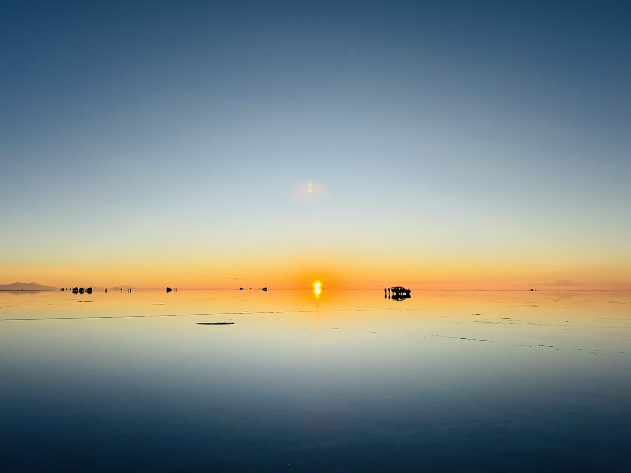 저녁이 되며 하늘의 태양이 지평선 아래로 떨어진다. 우유니의 빗물에 비쳐 태양이 두 개가 되었다가, 하나로 합쳐졌다가, 이내 사라진다.