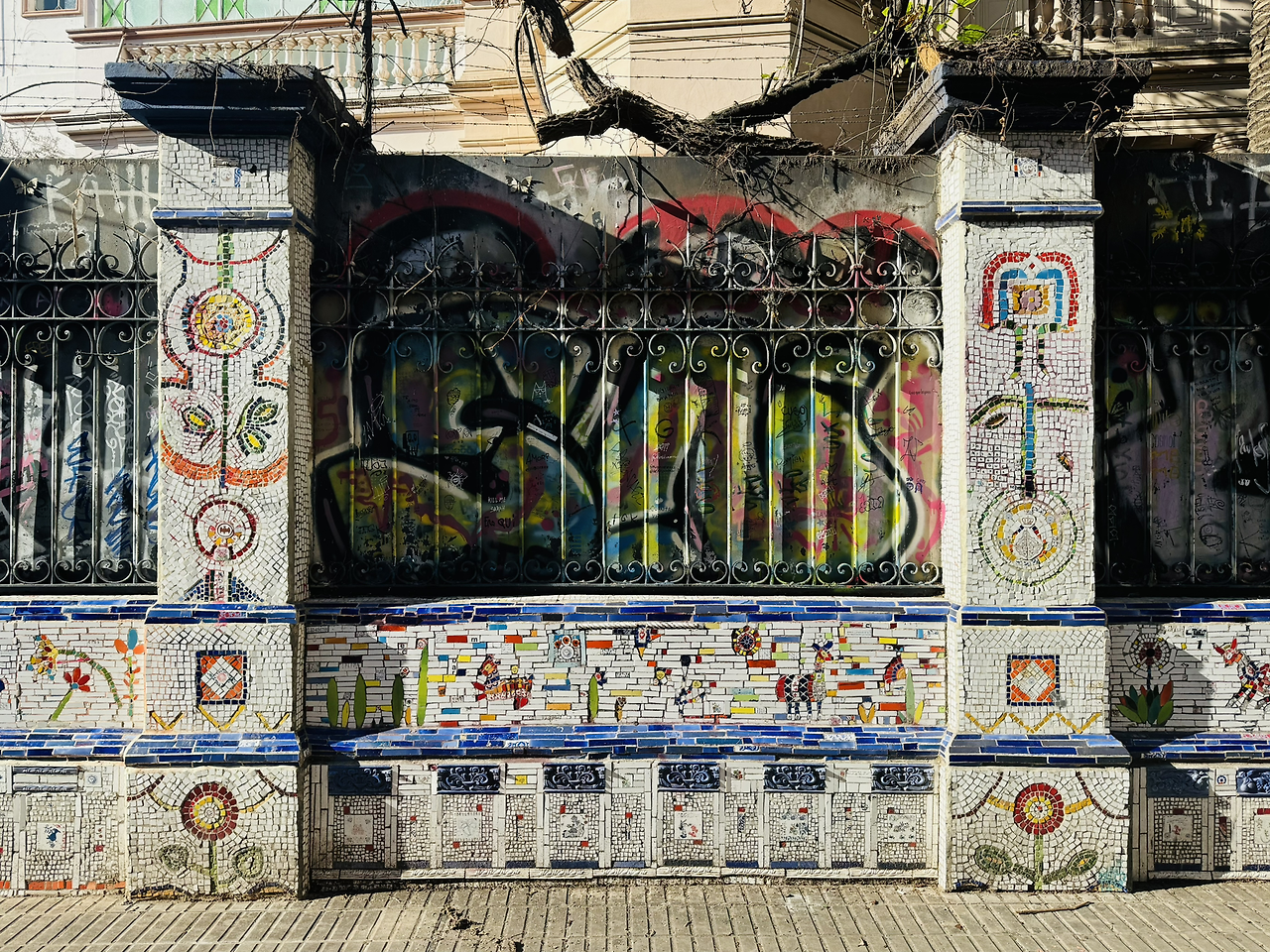 그냥 지나치기 쉬운 이 벽은, 여러 겹의 이야기가 담긴 벽이다. 자세히 보면 모자이크 질감이 보이는데, 원래는 모자이크로 된 벽이었다고 한다. 어느 날, 한 꼬마가 스프레이캔을 들고 이 골목에 나타났다. 그리고 모자이크 벽 위에 그라피티를 남긴다. 시 당국은 해결책에 대해 고민을 한다. 그라피티를 지울까, 그라피티로 채울까, 아니면 다른 그림으로 덮을까.
