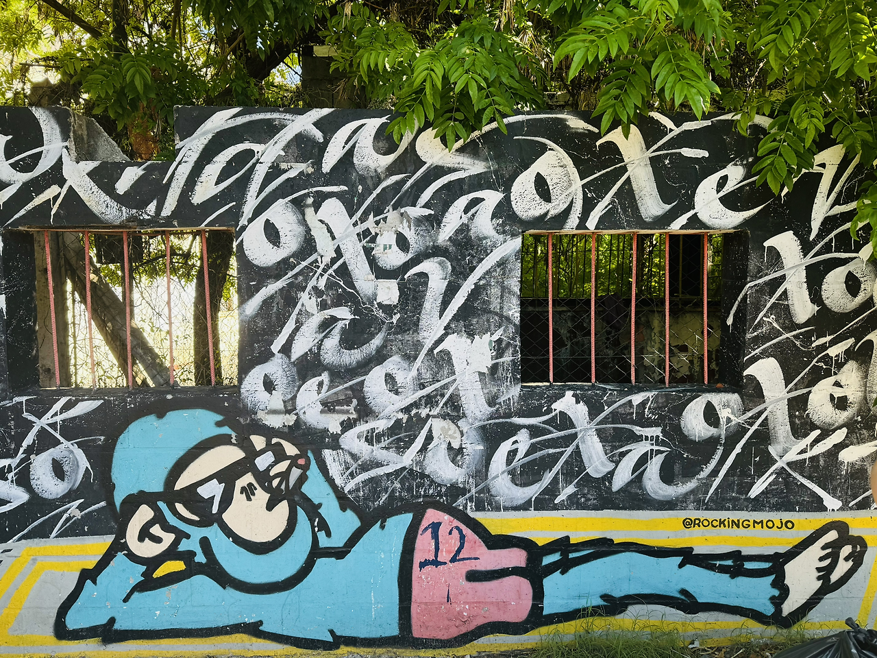 위 벽화는 Rockingmojo의 작품이다. 그는 게으름을 표현하는 캐릭터를 만들고 싶었고, 모조를 만들었다. 팔레르모의 사람들은 모조의 매력에 빠졌다. 편하게 누워 게으르게 빈둥대는 모조. 모조를 사랑하는 사람들이 모조의 복제품들을 골목에 그리기 시작했다. Rockingmojo는 모조의 복제품들이 골목에 스며들고, 본인의 예술이 퍼져나가는 것을 흐뭇하게 바라보았다. Rockingmojo가 이 자리에 그림을 그리고 2년이 지난 후 Rojasleon이라는 칠레 아티스트가 모조 근처에 글자를 입히기 시작했다. 처음에 아르헨티나 사람들은 화가 났다고 한다. 모조의 작품을 훼손했다고 생각했기 때문이다. 하지만, Rockingmojo는 오히려 모조의 방을 꾸며줘서 고맙다고 말하며, 이 자리로 돌아와 바닥에 노란 담요를 추가로 그렸다. 모조가 더 편하게 쉴 수 있도록. 모조의 관용과 포용이 돋보이는 따뜻한 작품이다.
