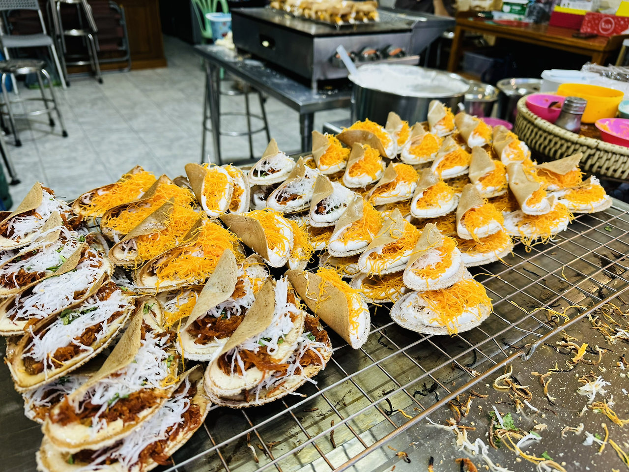 카놈 브앙은 태국의 전통 디저트로, 1300년대 아유타야 시대부터 이어져 온 간식이다. 처음에는 왕실이나 귀족을 위한 고급 디저트였지만, 시간이 흐르면서 대중에게 널리 퍼지게 되었다. 얇은 팬케이크에 머랭과 잘게 다진 코코넛, 그리고 달콤하거나 짠 토핑을 넣어 만든다.