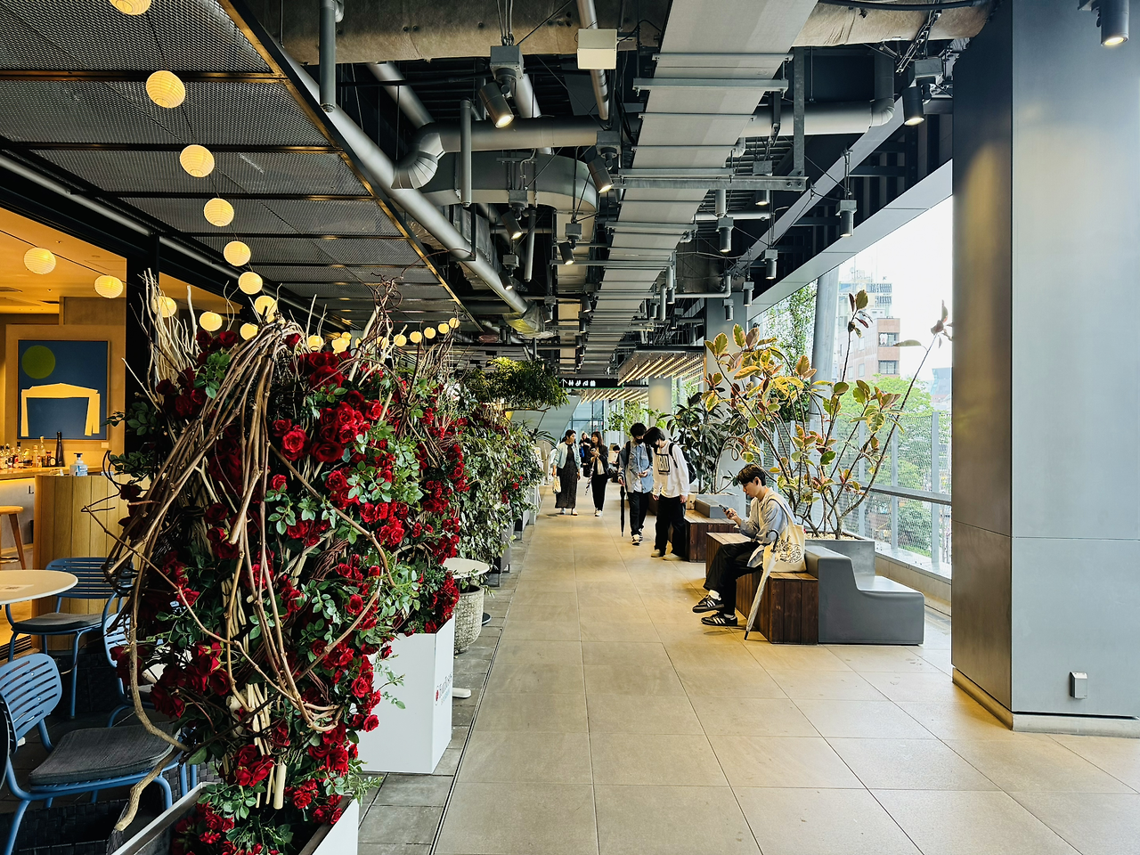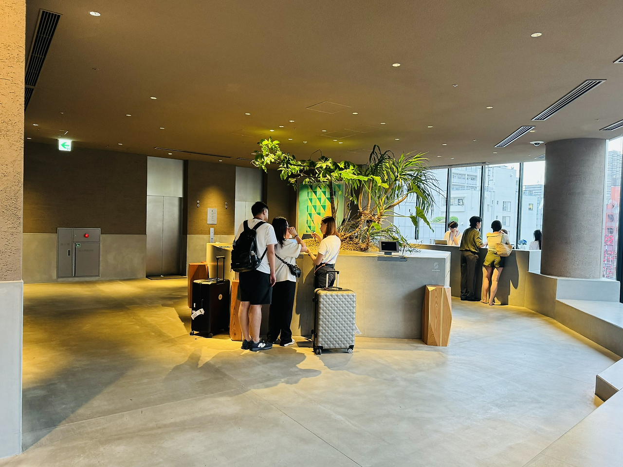 이 공간을 넘어서 들어가면 체크인을 할 수 있는 곳이 나옵니다. 호텔과 공원을 자연스럽게 연결했습니다. 미야시타 파크의 상업시설과 공원, 그리고 공원과 호텔을 연결하는 카페를 차례로 지나, 마지막 로비에 도착했을 때 완성되는 시퀀스가 보입니다.