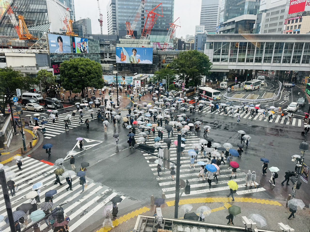 도쿄 시부야의 사거리는 세계에서 가장 번화한 교차로로 꼽힙니다. 일반 사거리와는 다른 점이 하나 있는데요, 사거리를 에워싸는 횡단보도들에 더해 대각선 횡단보도가 하나 더 있습니다. 따라서, 신호가 바뀔 때는 사방에서 동시다발적으로 사람들이 길을 건넙니다. 45초 동안 많을 때는 3천 명이 길을 함께 건넌다고 해요.