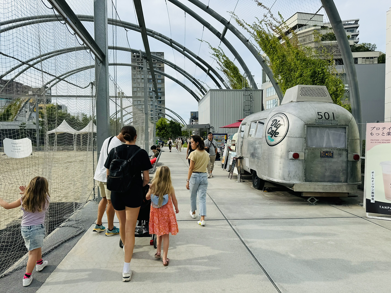 미야시타 공원은 1953년 개장했습니다. 1964년에는 공원 옆 시부야강이 배수로로 바뀌며 현재 위치로 옮겨져 도쿄 최초의 옥상 정원이 됩니다. 하지만 미야시타 공원은 그리 크게 사랑받지는 못했어요. 시부야의 주요 상업시설과는 떨어져 있었고, 그러다 보니 노숙자들이 모여드는 공간이 되었거든요. 시부야구는 이를 타개하기 위해 미츠이 부동산과 손을 잡고 공원을 재개발합니다. 공원과 상업시설, 호텔과 주차장을 유기적으로 연결하는 '입체도시공원'을 지향했고, 현재의 모습으로 2020년에 재개장했습니다. 현재 미야시타파크는 330m 길이의 공원을 품은 커다란 하나의 복합 쇼핑몰처럼 느껴집니다.