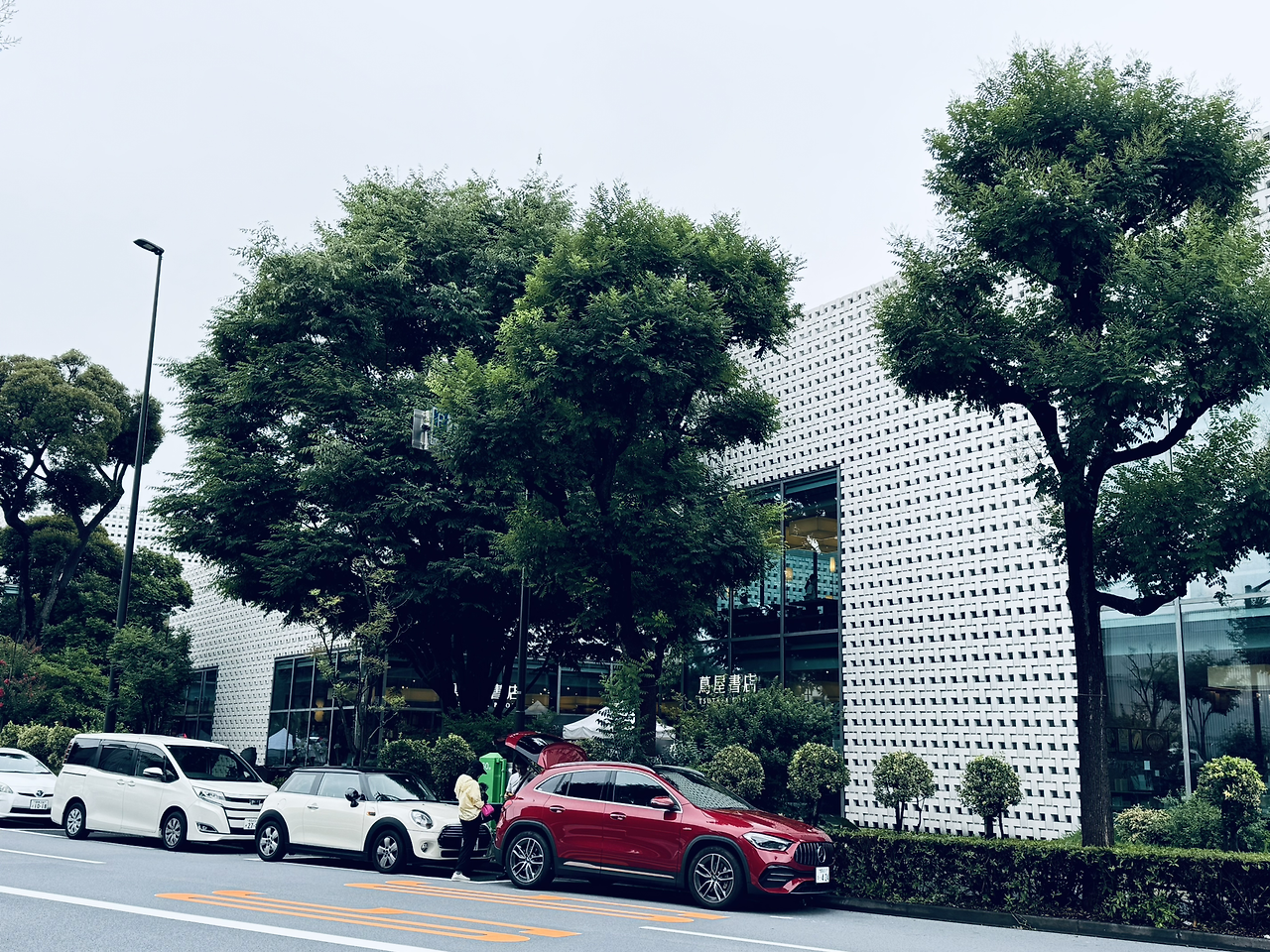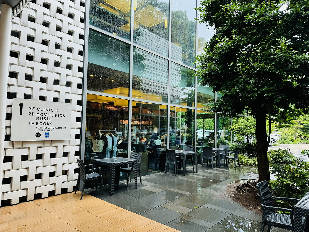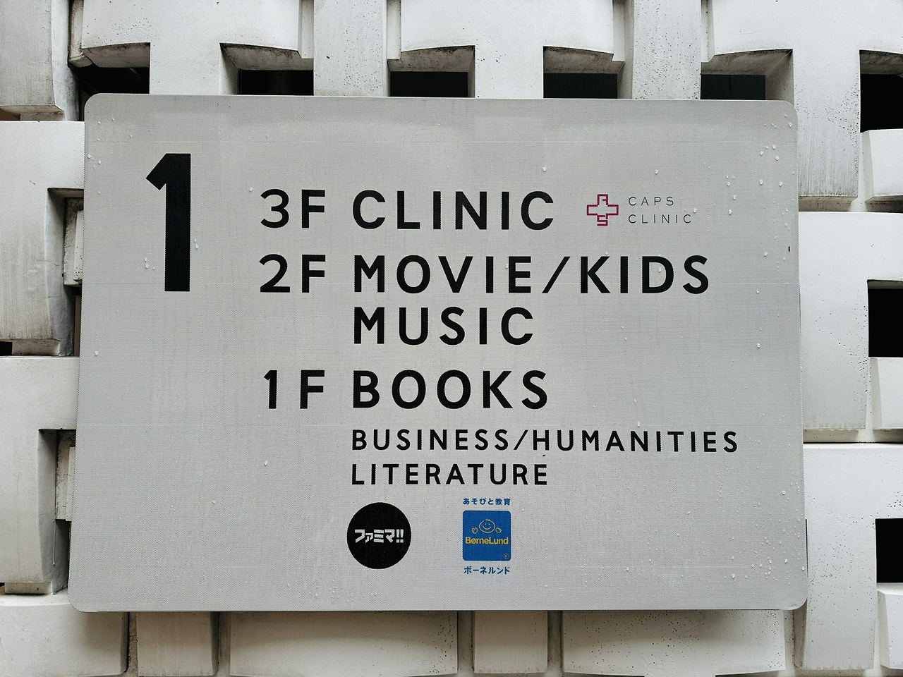 다이칸야마 츠타야에 가면 2-3층으로 이루어진 건물 3개가 있습니다. 건물 앞에 T가 츠타야 (Tsutaya)의 T-SITE를 상징합니다.