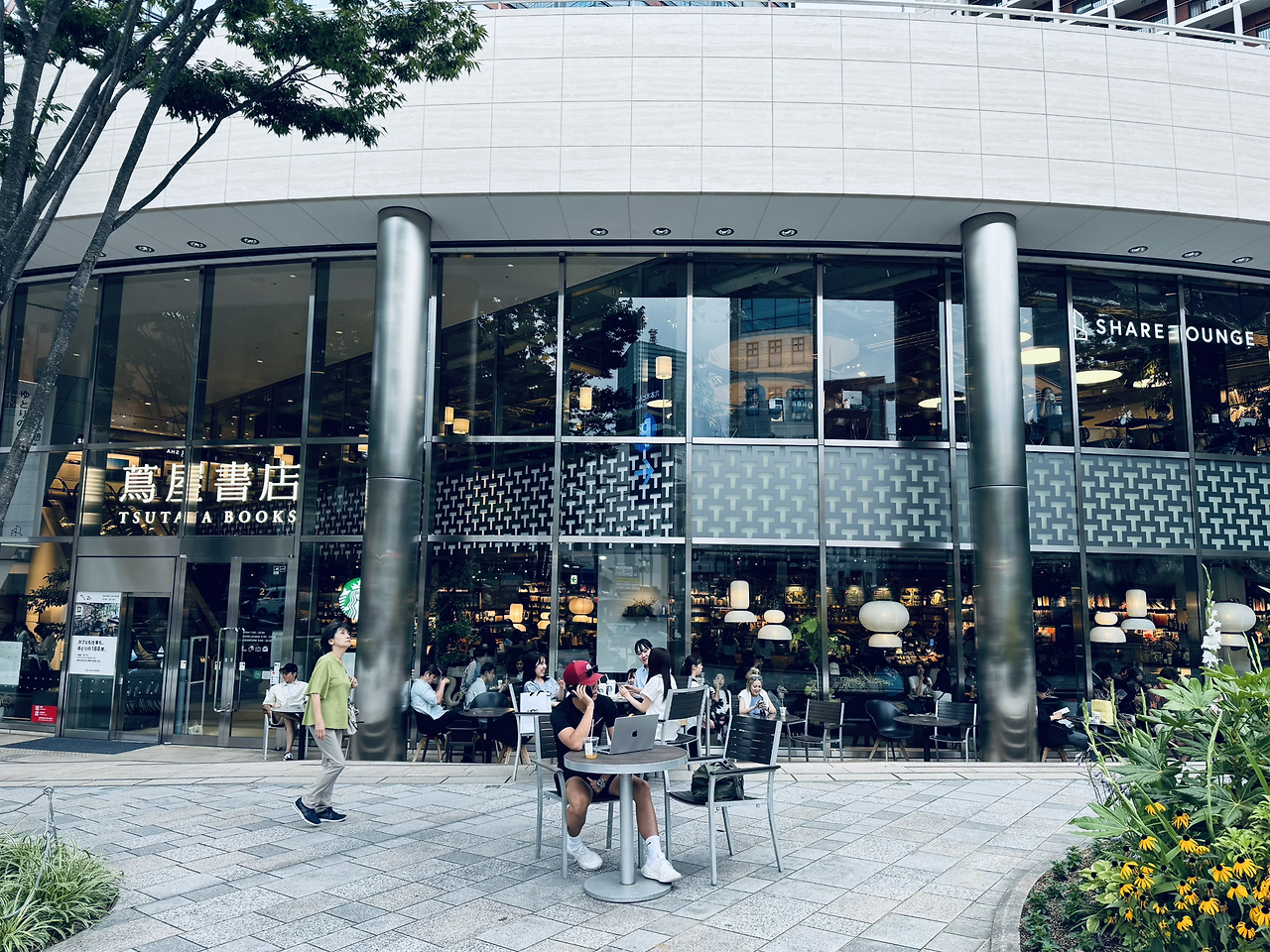 츠타야는 2019년 셰어 라운지를 론칭했습니다. 셰어라운지는 공유 오피스의 편리함과 라운지의 편안함을 결합한 공간입니다. 엄선된 가구로 업무에 집중할 수 있는 1인석부터 여러 명이 이용할 수 있는 박스석, 회의나 모임을 할 수 있는 룸을 마련하고 라운지처럼 무료 음식, 간식, 커피, 음료, 주류를 제공합니다.