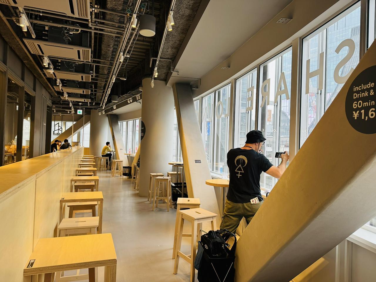 시부야의 셰어라운지는 카페 분위기로 꾸며졌습니다. 의자는 대부분 나무였는데, 유동 인구가 많다는 점을 고려해 오래 앉아있는 사람들을 타겟하기보다는 잠시 머물다 갈 사람들에 집중하는 것 같았습니다.