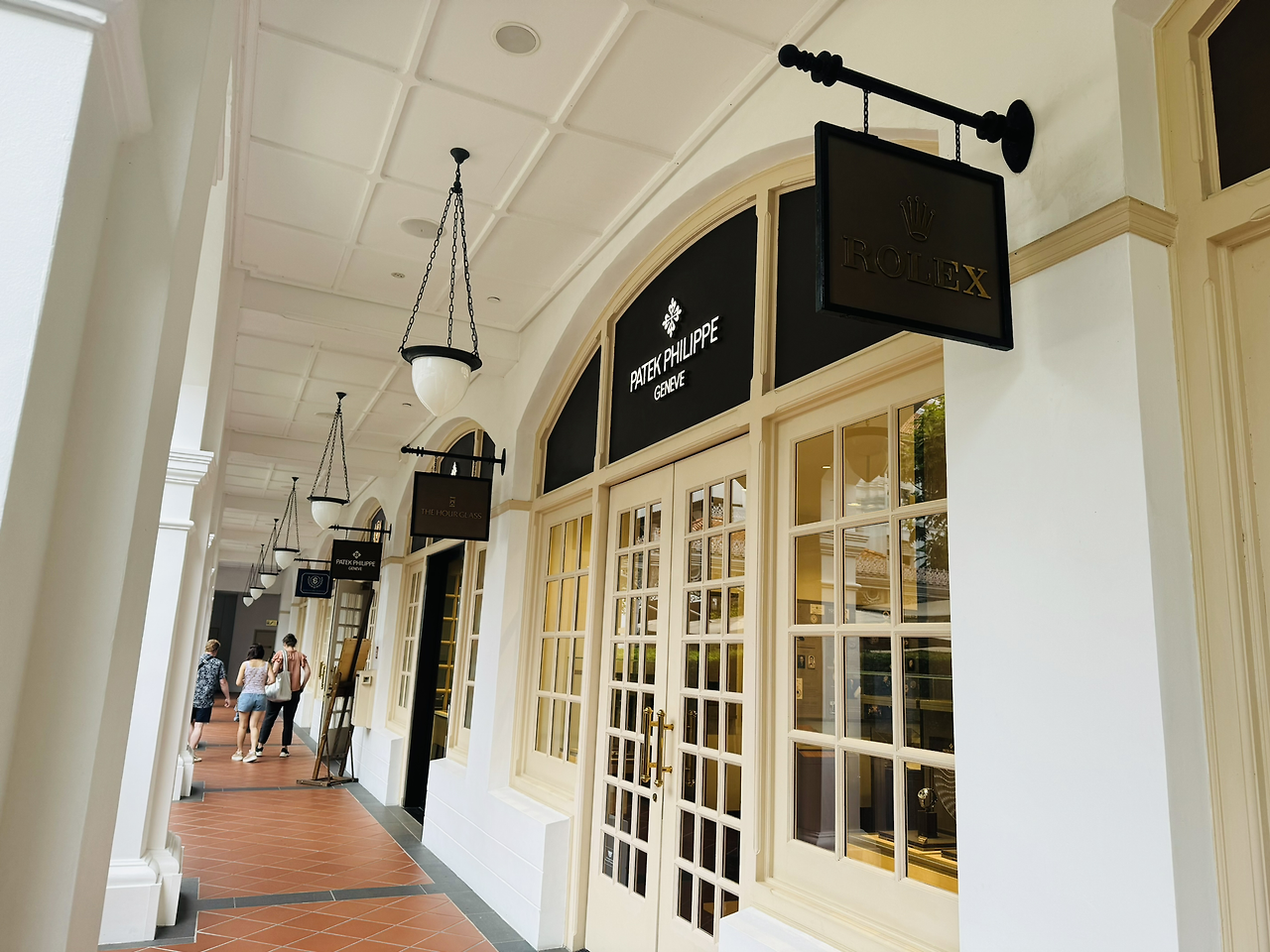 래플스 아케이드는 쇼핑과 미식을 위한 공간입니다. 롤렉스, 파텍 필립, 반 클리프 아펠 등 명품 브랜드가 모여 있고, 마스터셰프 제렘 렁(Jereme Leung)의 중식 레스토랑 Yi, 프랑스 요리의 전설인 알랭 뒤카스(Alain Ducasse)가 선보이는 지중해식 요리를 만날 수 있는 Osteria BBR, 미슐랭 스타를 받은 셰프 안 소피 피크(Anne-Sophie Pic)의 프렌치 레스토랑 라 담 피크(Le Dame Pic) 등에서 맛있는 음식도 즐길 수 있습니다.