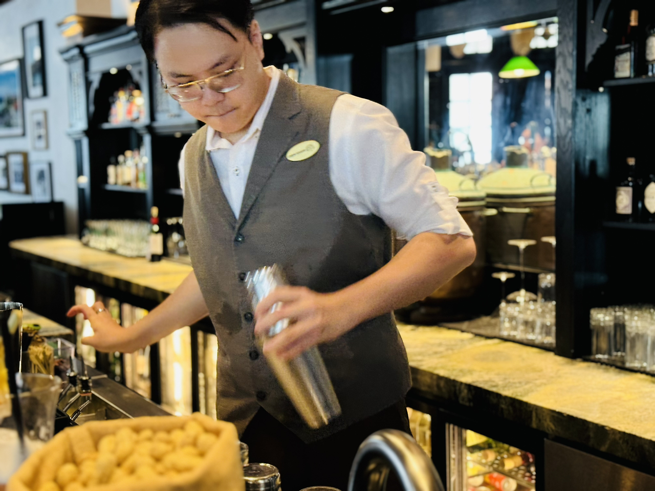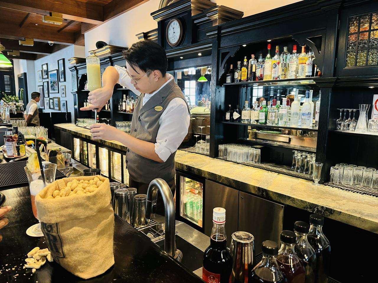 2층의 바의 장식은 소박하면서도 정겹습니다. 1920년대 모습에서 영감을 받았다고 해요. 카운터는 열대 농장을 떠올리게 합니다.