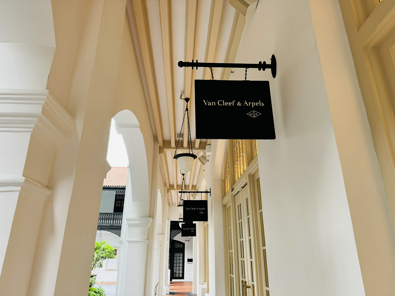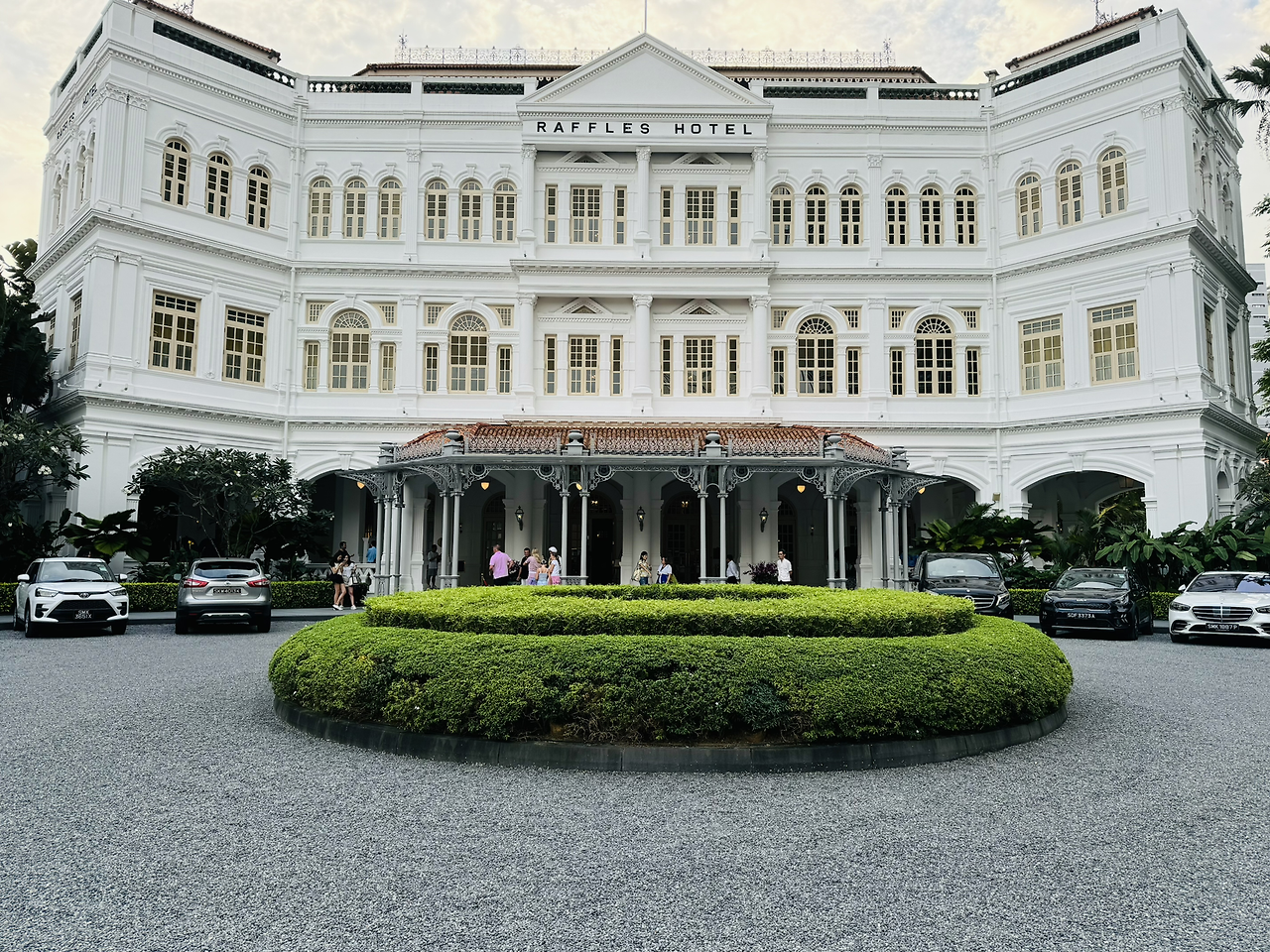 래플스 호텔은 영국 콜로니얼 양식으로 건축되었고, 새하얀 외관이 특징입니다. 여행객을 태운 마차가 지나던 로비 앞 길은 아직도 자갈로 이루어져 있어요.