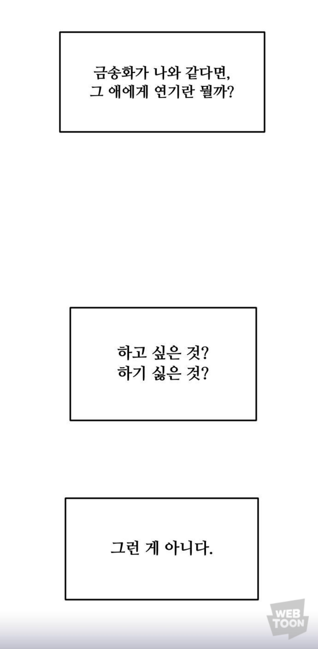 연기는 운명이었다. 작중에서도 천리사는 그렇게 말한다. 천리사에게 있어서 연기는, 피할래야 피할 수 없는, 결국 자신이 해야하는, 사랑해마지 않는 일인 셈이다. 또 천리사는 자신이 연기를 잘하는 걸 즐겼다. 이것도 연기를 계속 했던 이유 중 하나라고 생각한다. 연기에 대한 자화자찬은 작중에서도 자주 언급되는 부분이기도 하다. 공백기 이후 처음으로 연기를 했을 때도 '내가...연기를 못한다는 소리를 듣다니. 이 내가? 천리사가? 나....천리사인데?'' 하고 자신의 연기에 대한 자부심을 드러낸다.