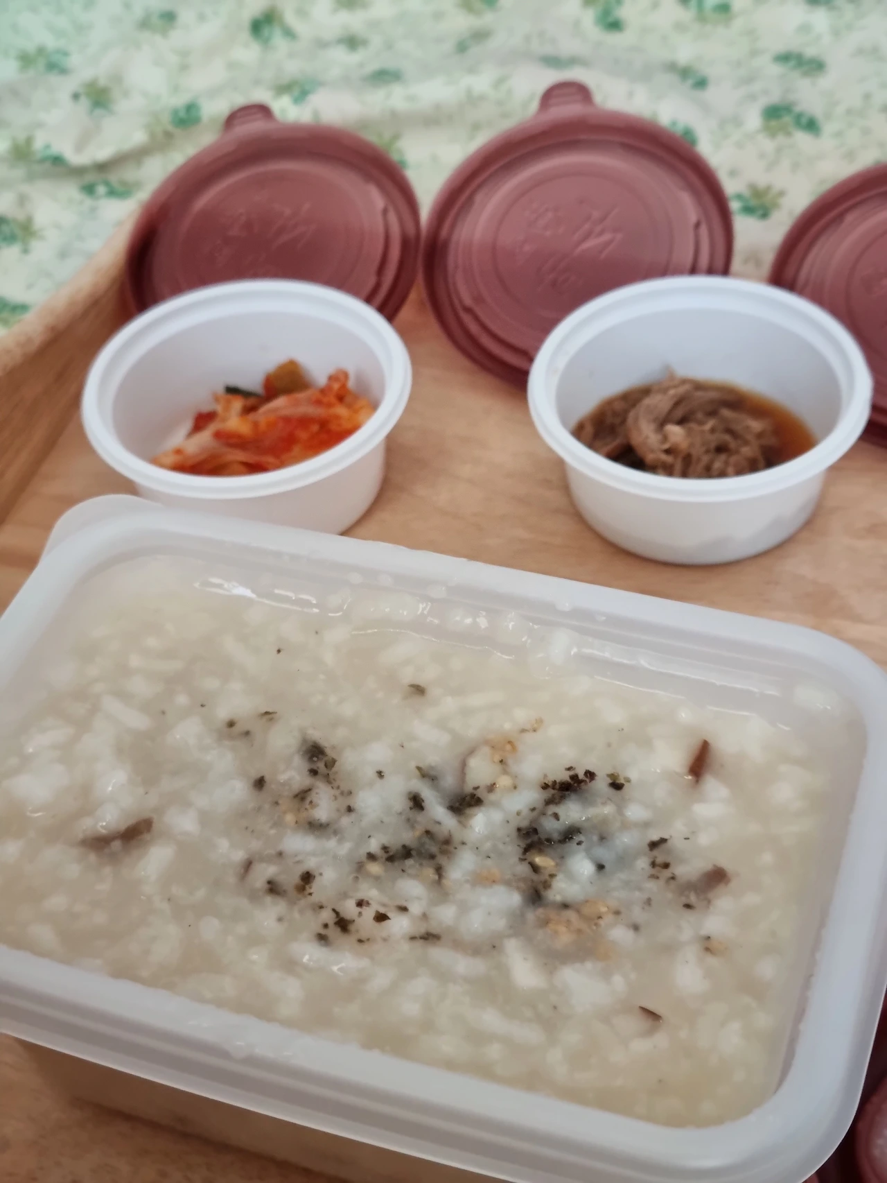 다행히도 이번에는 그 정도는 아니었다. 하루 이틀을 심하게 앓다가 멀쩡해져서 몸무게는 순식간에 원상복귀가 되었다. 더 길었다면 인내심도 바닥났을 것이다. 아픈 동안에는 오랜만에 죽을 먹었다. 전문 프랜차이즈 죽집에서 무려 전복죽을! 먹고 싶은 죽을 시키라는 말에 주저 없이 선택한 음식이었다.