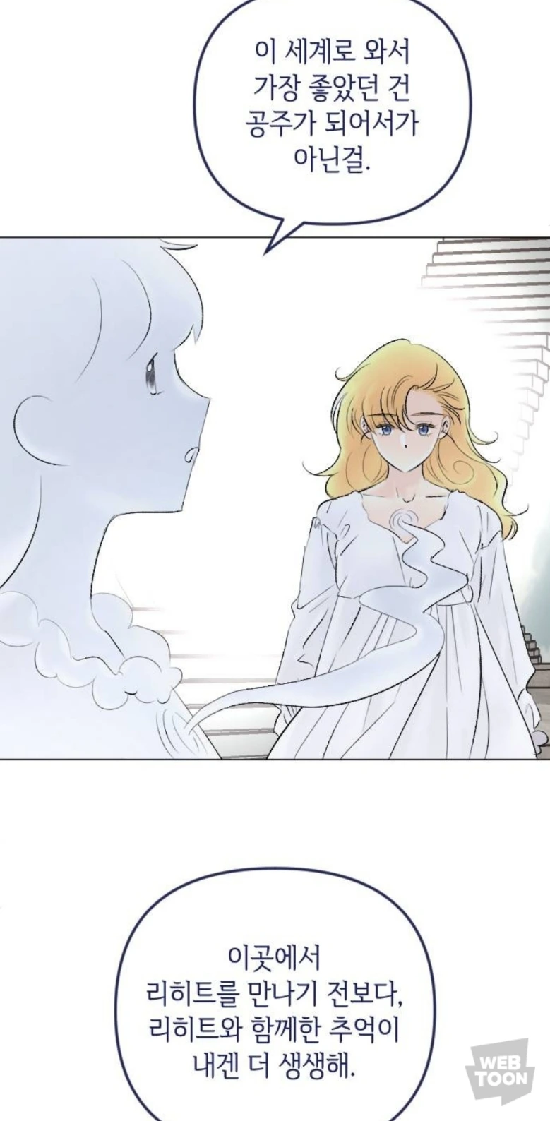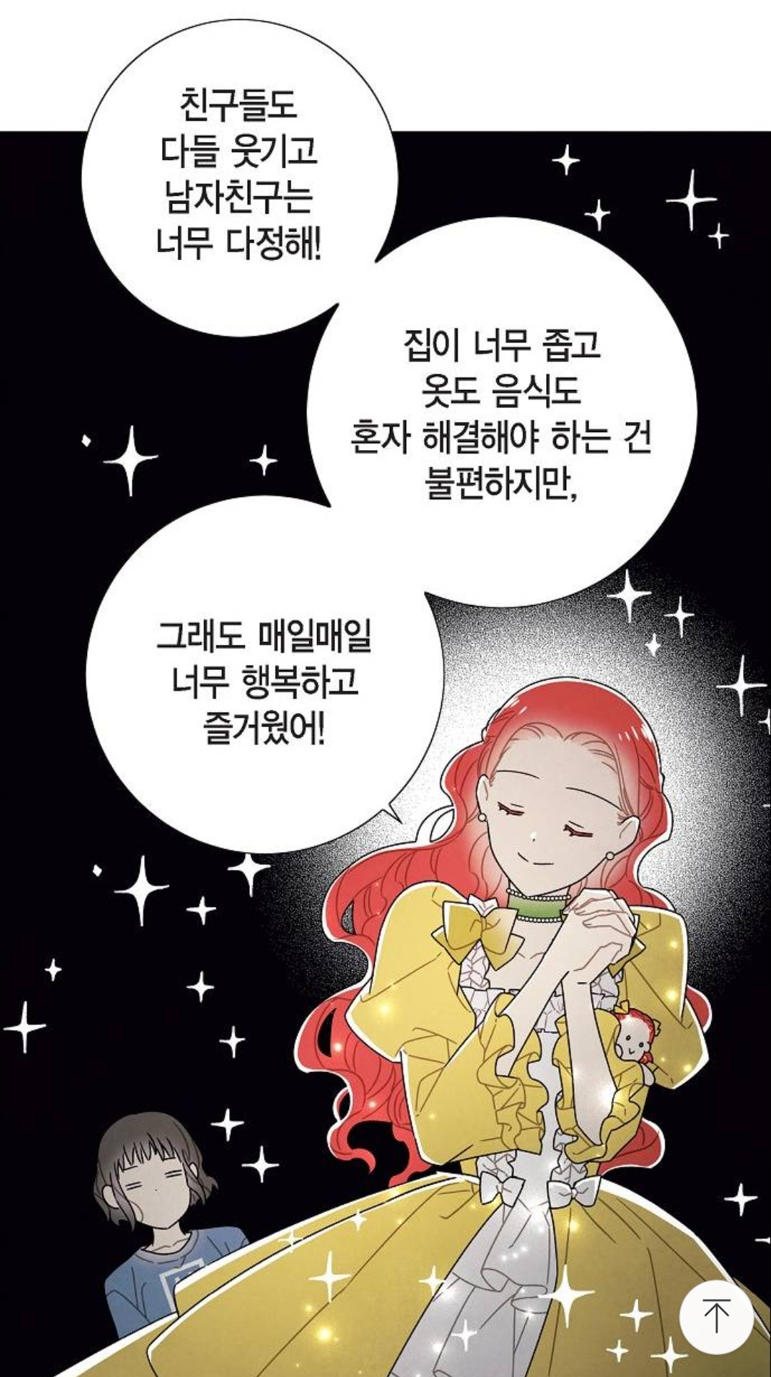 제주도에서 한 달 살기를 한 사람과 평생을 제주도에서 살아온 사람이 생각하는 제주도가 다른 것처럼 독자들이 보지 못했던 그 세계의 단점에 대해 줄줄이 읊어준다. 백작 영애라는 지위만큼 무거웠던 의무나 행동들. 현실에서 진짜 리플리는 자신을 억압했던 상황-백작 영애-에서 벗어나 온전한 자신의 인생을 살아가고 있었다. 소설이라 가지고 있었던 세계의 한계, 자신이 주인공이 될 수 없는 세계를 버리고 주인공이 될 수 있는 현실에 만족한다. 그렇기에 돌아가고 싶지 않다고 이야기한다. 분명 독자들이 보지는 못했지만 리플리가 빙의된 세계에서 새로운 삶을 만들어나간 것처럼 진짜 리플리도 이곳을 선택하게 만들 수밖에 없는 여러 가지 이유들을 찾아냈을 것이다.