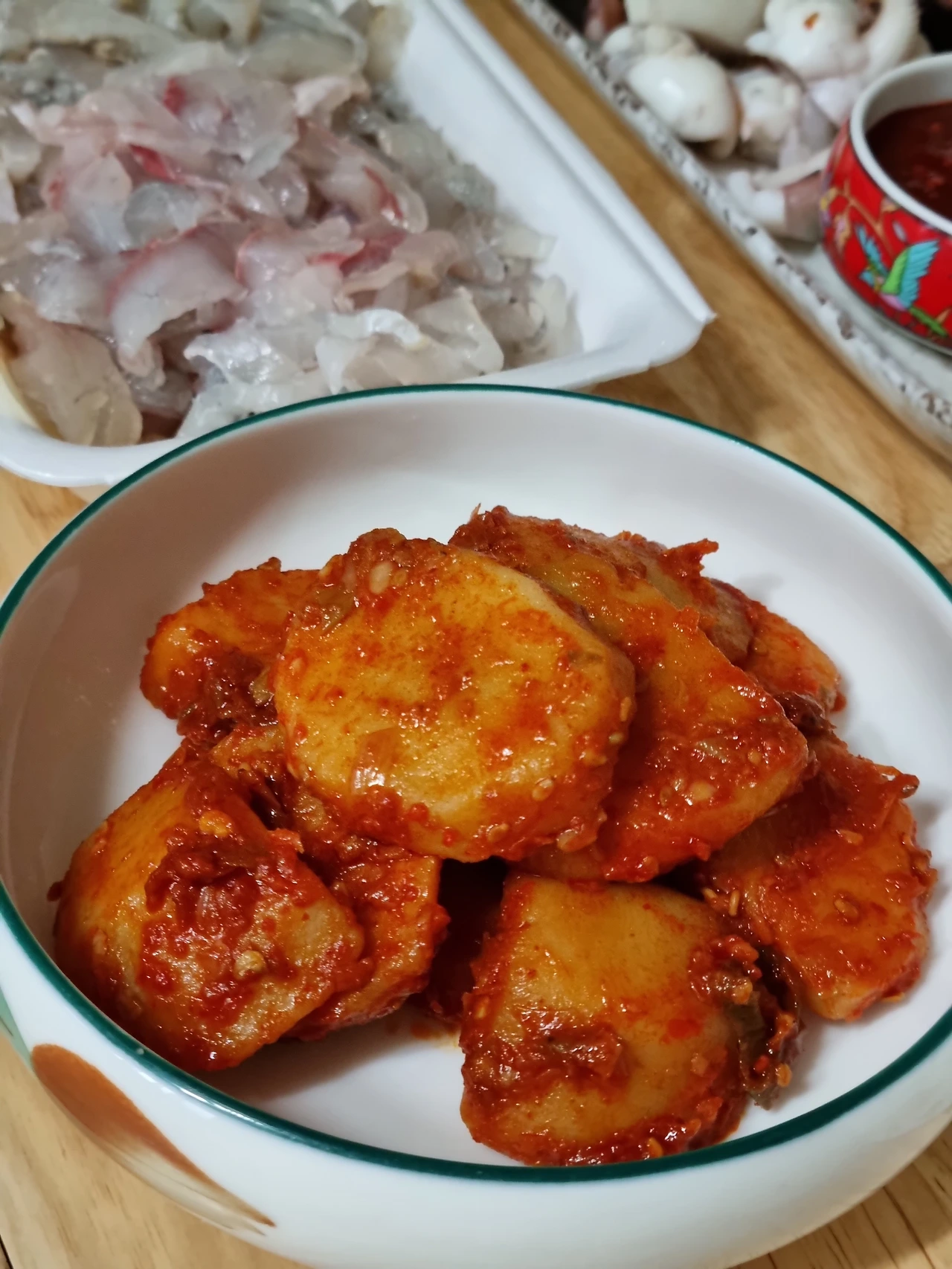 그래도 나이가 들면 입맛이 바뀐다고, 아빠가 하도 맛있게 먹고 자꾸 찾으니 어떤 맛인가 싶어 먹어봤다. 고등학생이 되고서야 다시 먹은 빨간 감자는 짭짤하고 매콤한 맛이 묘하게 돌아서 중독적인 맛이었다. 딱딱하지 않은 식감도 좋았고 겉에 양념이 잔뜩 발린 것도 좋았다. 그래서 그때부터 집에서 빨간 감자를 외치는 사람이 늘었다.