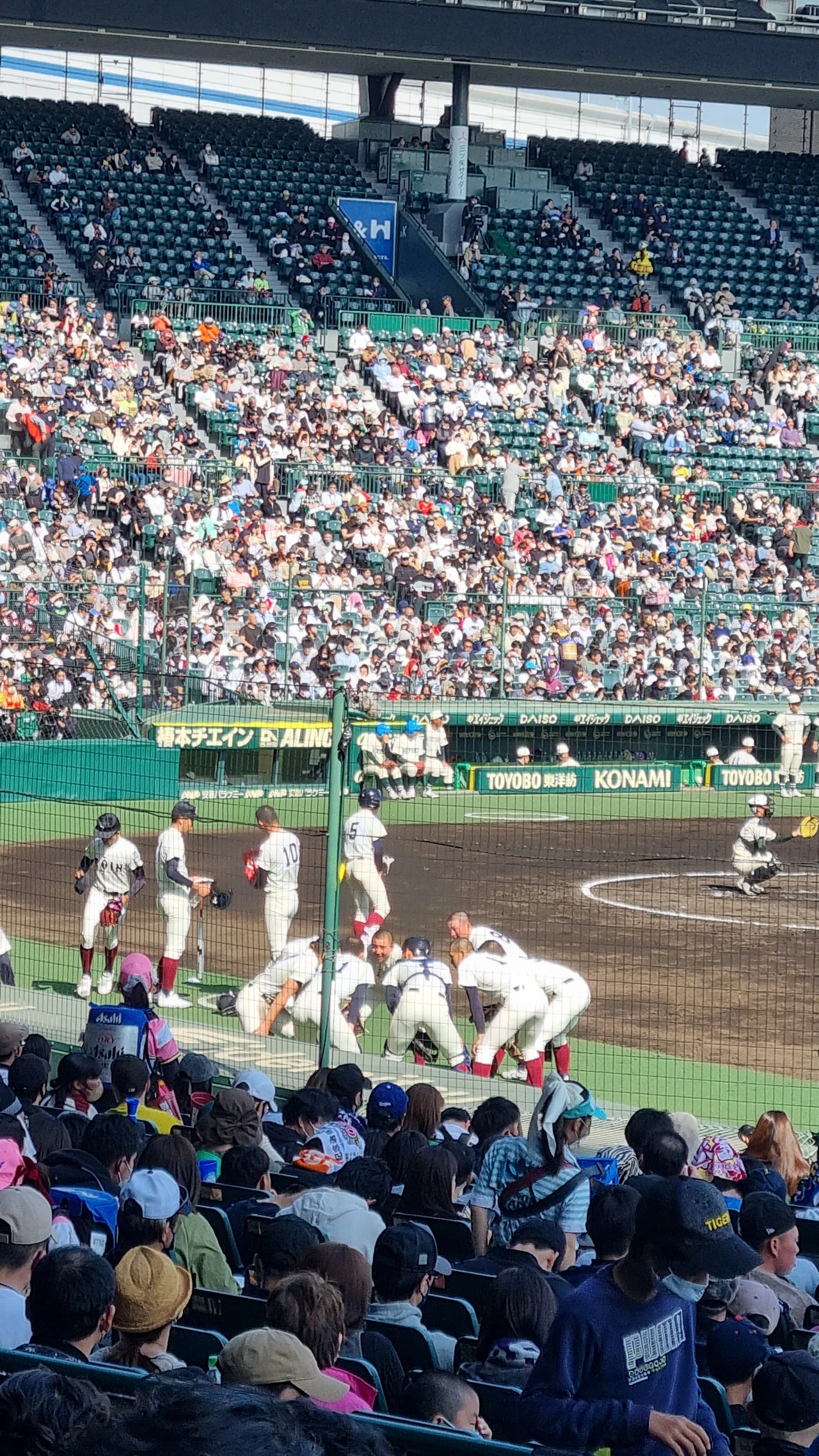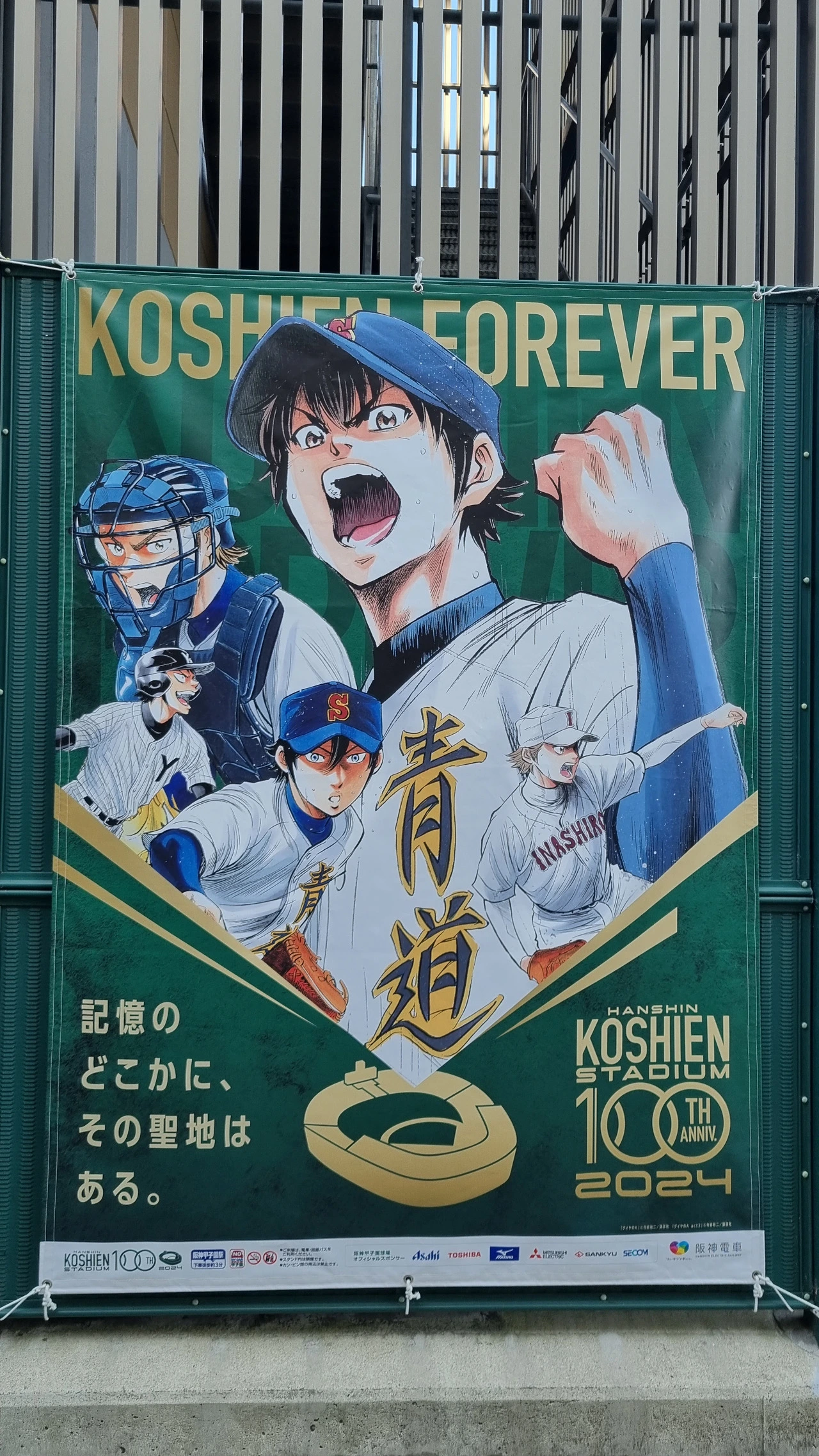 일본 교환이 확정되고 나서 가장 기다렸던 순간이었다. 고시엔역에 내려서 구장을 처음 봤을 때는 숨이 막히는 기분이었다. 내년으로 고시엔 구장이 지어진지 100년이 되는데, 그걸 기념해서 야구만화들과 콜라보를 한 일러스트가 있었다. 고시엔 구장에서 우리 애들을 마주했을 때의 심정이란. 너희 때문에 난 여기까지 왔다고 소리쳐주고 싶었다.