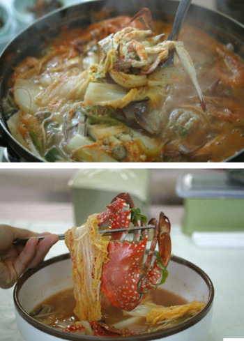 게 국에 담근 김치나, 우거지, 호박, 해산물을 넣고 끓여 환상적인 조화로 맛이 기막혀, 우리가 어려웠던 시절 국물 한 방울까지 알뜰히 사용했던 조리법이 게국지 탄생의 일등 공신이었으며, 이 3가지 음식을 먹으면 장수(長壽)한다고 한다.