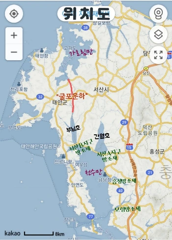 부남호(천수만) 역간척이 실현되면 그 후속사업으로 천수만과 가로림만을 연결하는 ‘굴포운하’(길이 약 7km/ 아래 도면 참조) 건설도 국가 어젠다로 충분히 검토할만한 가치가 있는 사업이 될 것이다.