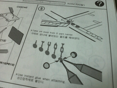 근데, 이 것을 표현한 키트에서는 아주 약한 금속 에칭 부품과 파트에 붙어 있는 반구모양의 작은 부품을 칼로 떼어내어 양쪽으로 하나하나 붙여줘야 하는데...이것이 개인적으로는 인내의 한계를 느끼게 하는 작업이었다. 간신히 대략 흉내는 냈지만 자세히 들여다보면 엉망으로 작업을 완료한 부품이었다.