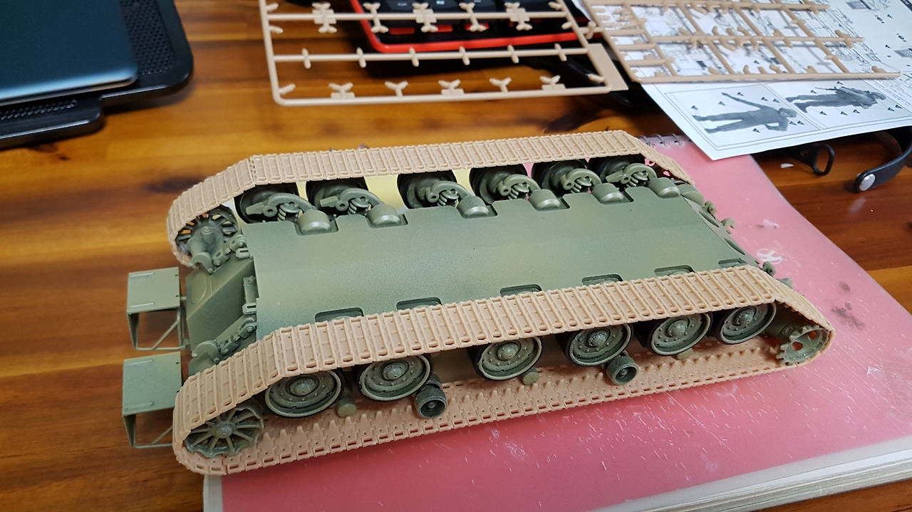 그 동안 전차의 궤도는 고무수지로 되어 있는 연질궤도만 경험을 했었는데, 이번에 처음으로 반연결식 궤도 조립을 경험했다. 반연결식 궤도는 상단과 하단은 궤도가 조립되어 있지만 곡선 모양으로 꺾이는 부분의 궤도는 궤도 부품 하나하나를 조립해 붙히고 그걸 연결하는 형태이다.