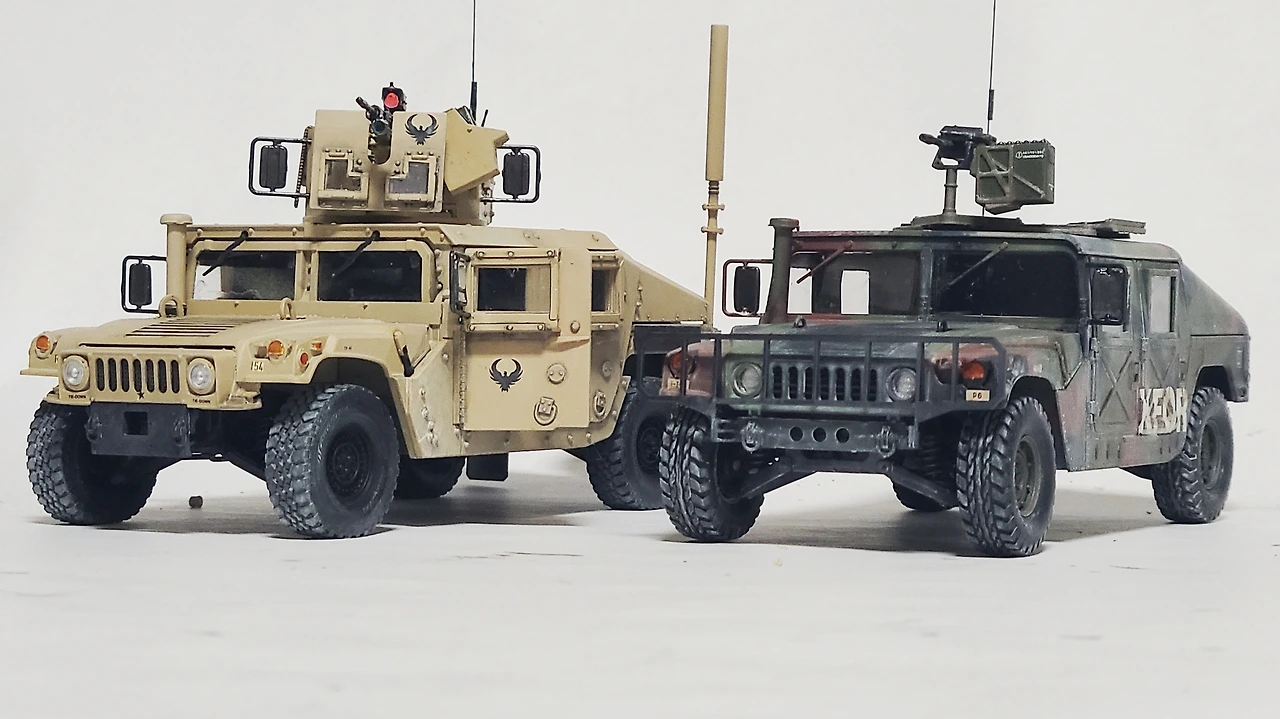 사막색의 증가장갑형 험비 M1151 버전과도 나란히 찍어봤다.