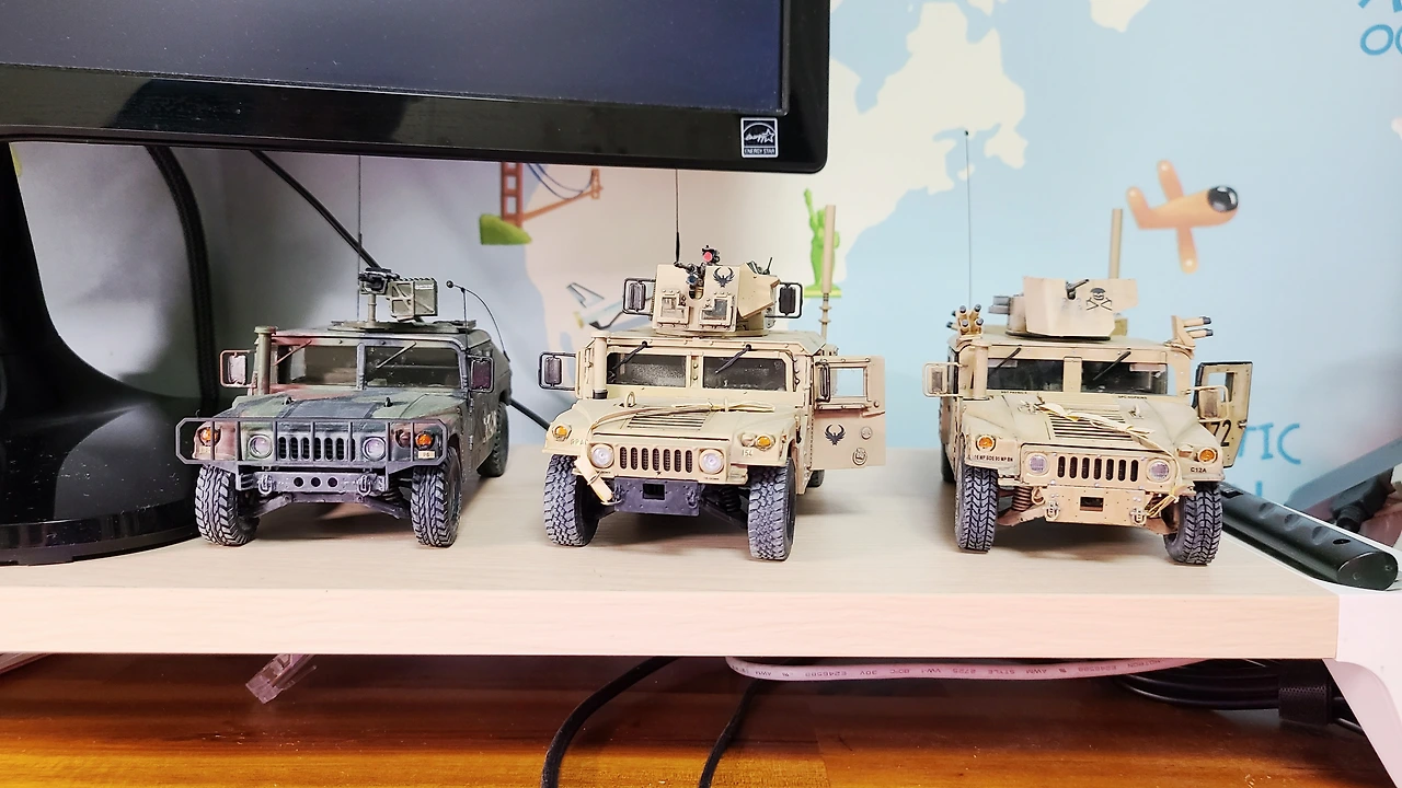 일반적인 프라모델이 1/35 사이즈로 제작되는데... 험비는 그 사이즈로 제작했을 때 책상 위에 컴퓨터 위 등 올려두기에 딱 적당한 크기가 된다. 그래서 험비로 시작했다.