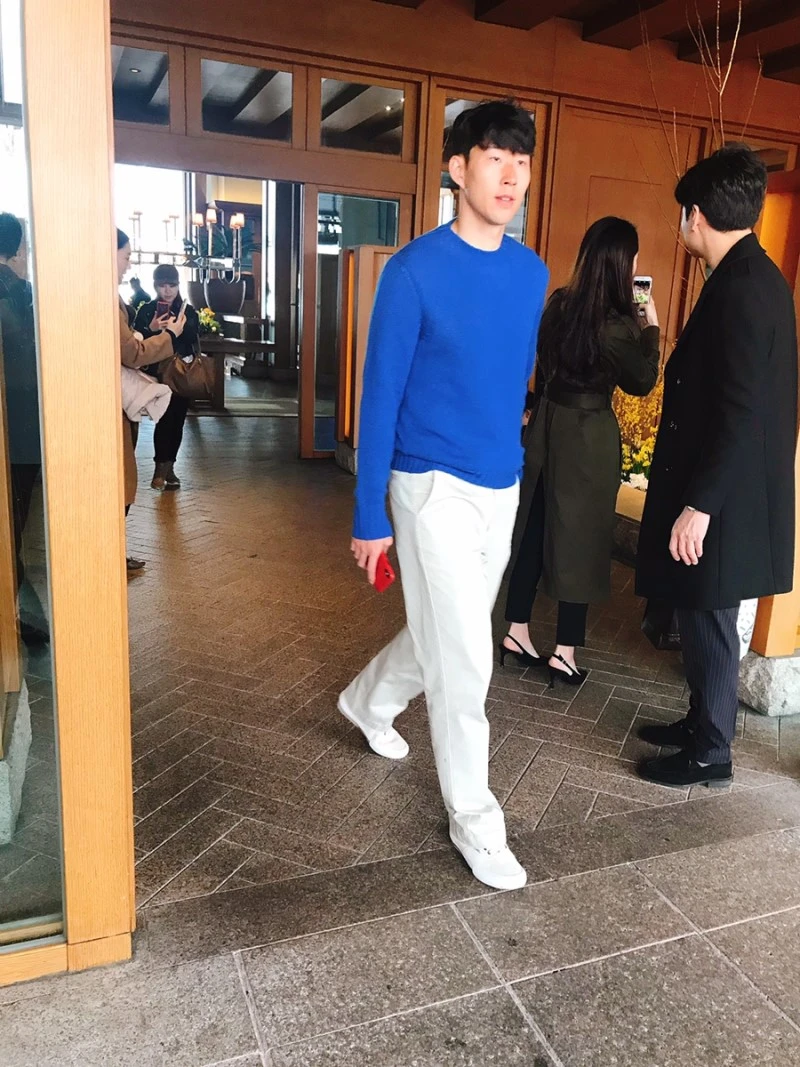 개미씨와 설레는 마음을 안고 주차 후 로비로 올라가는 길이었다. 정문에 카메라와 함께 높이가 꽤 높은 벤츠 밴이 정차되어 있어서 차 멋있네, 누구 유명한 사람 결혼식이 있나? 하고 지나치려는 순간, 사람들 사이에 서있는 사람은... 신랑신부가 아닌 손흥민..??!!