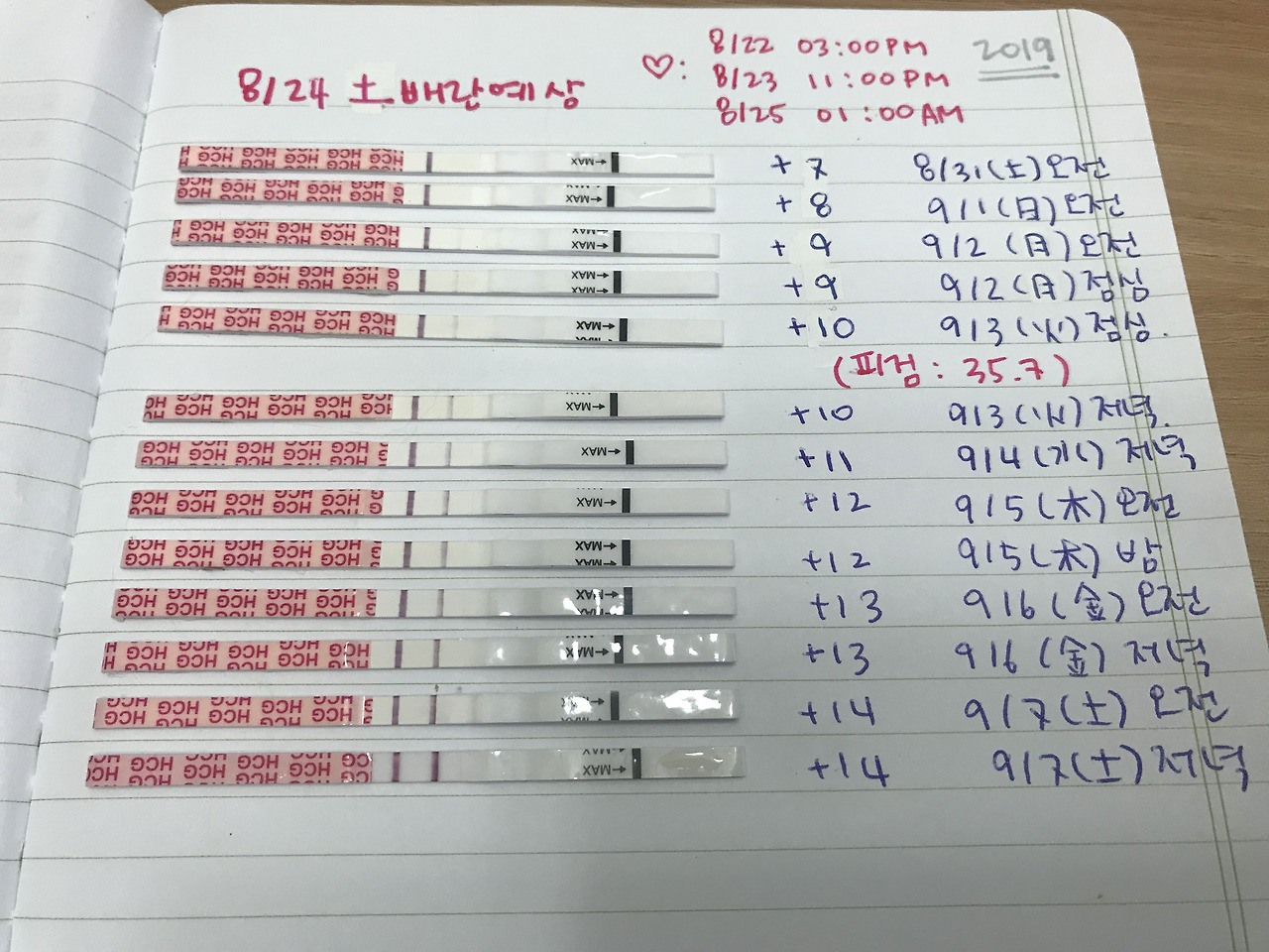 그러니까, 난임 휴직한 지 한 달이 채 되기도 전에 두 줄이 나왔다.