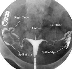 나팔관 조영술은 말 그대로 자궁을 통해 나팔관에 조영제를 흘려넣는 시술로, 자궁에서 난소로 이어진 관이 잘 뚫려 있는지 확인하고자 하는 목적이다. 조영제를 정액이라 치면, 이 시술을 통해 정액이 난소까지 무리없이 도착할 수 있는지를 확인해볼 수 있으니 자궁내 정액 이동 시뮬레이션(?)이라고도 할 수 있으려나. 간혹 중간에 유착이 있거나해서 막힌 부분이 있다면 정자와 난자가 만날 수조차 없을테니 나팔관 조영술은 난임 검사에 필수 항목이다. (그리고 이렇게 한번 뚫어주면 유착이 없었다 하더라도 길이 잘 열려 임신이 잘된다는 썰도 있다. 과연??)