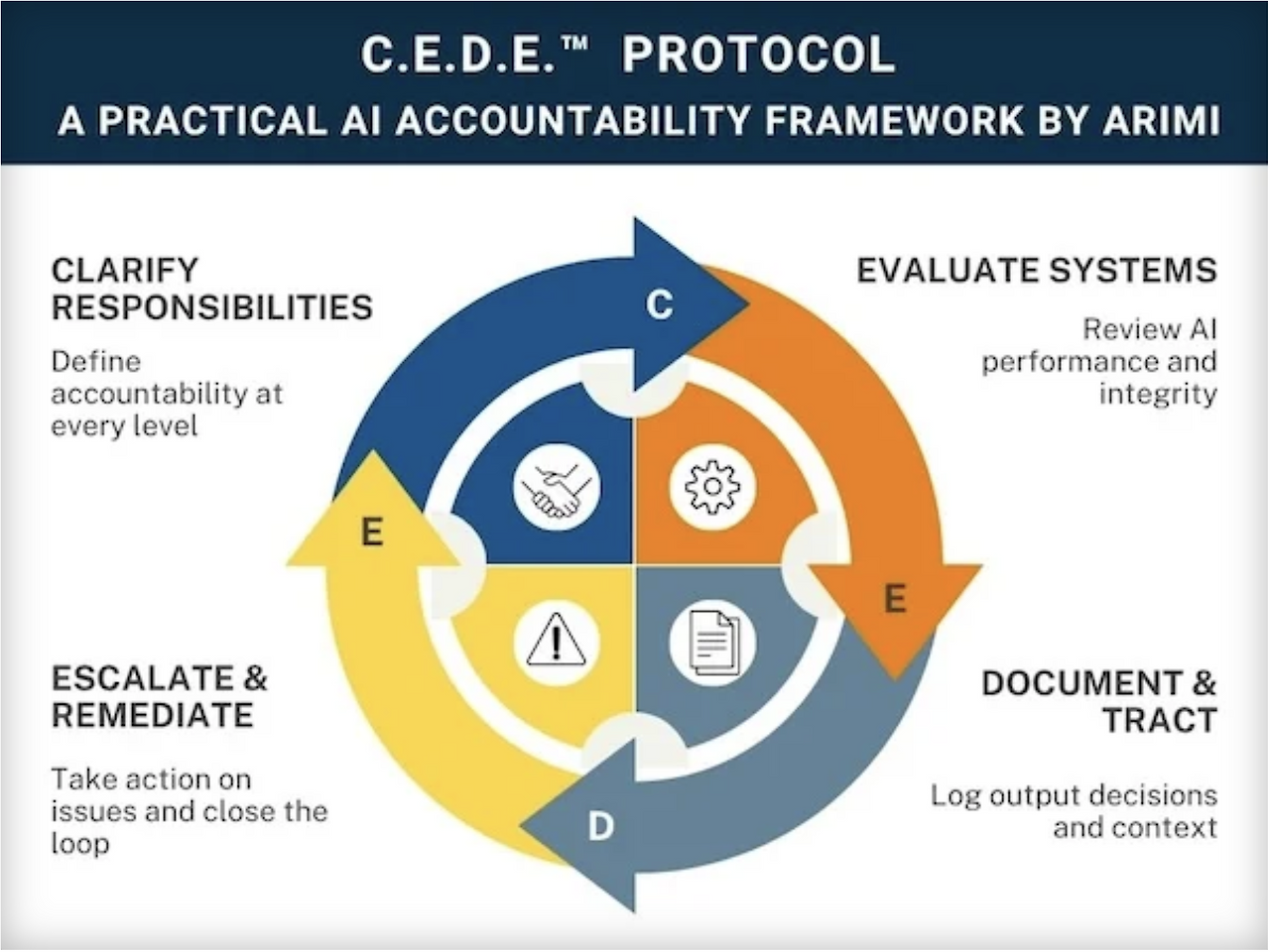 ARiMI(Asia Risk Management Institute)는 AI 시스템의 책임성을 실무적으로 관리하기 위해 C.E.D.E. 프로토콜을 제시했습니다. 4)