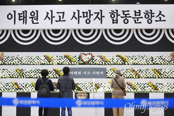이태원 사고 사망자 (X), 이태원 참사 희생자 (O) / 희생자 위패도, 영정 사진도 없었던 윤석열 정부 합동분향소.