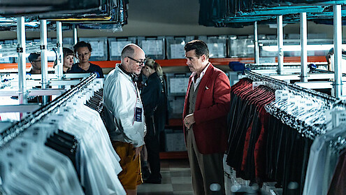 의상 디자이너 리지 크리스틀의 작업 역시 영화의 혼란스러운 세계관을 구축하는 데 결정적인 역할을 합니다. 도일이 입는 화려하지만 어딘지 모르게 촌스러운 벨벳 재킷과 노란 가죽장갑은 ‘가난한 자가 상상하는 부자의 모습’을 정확히 구현해 내죠. 크리스틀은 도일이 고수하는 전통적인 상류층 유럽 스타일과 전통적인 중국식 실루엣을 혼합해 서양인인 그가 동양이라는 무대 위에서 필사적으로 ‘도일 경’이라는 훔친 역할을 연기하고 있음을 시각적으로 드러냅니다.