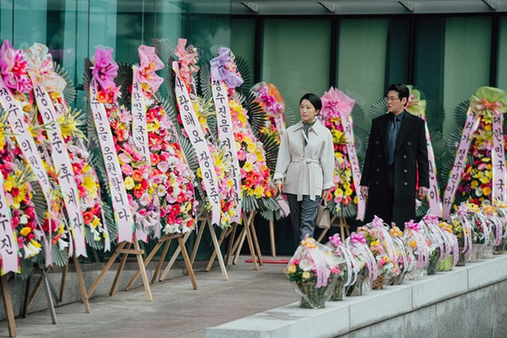 박동호(설경구)와 정수진(김희애)의 치열한 수 싸움으로 가득한 대결 구도가 시리즈 처음부터 끝까지 이어지면서 한국 정치사의 굵직한 사건들과 인물이 되짚어집니다. 일반적으로 대부분의 한국 정치 드라마가 여러 가지 논란을 피하기 위해 특정 정당의 성향이나 인물을 모호하게 설정하는 것과 달리 <돌풍>에서는 한국 현실 정치를 대표하는 두 정당을 선명하게 묘사하고 있죠. 정치에 관심이 있다면 누구나 떠올릴 수 있는 인물의 서사나 대사가 많아 드라마와 객관적인 거리를 유지하기가 쉽지 않습니다.