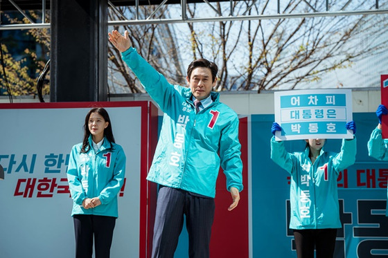 <돌풍>은 산업화 시대와 반공보수, 독재, 운동권의 물락과 부패까지 진영을 가리지 않고 한국 정치사에 독설을 퍼붓습니다. 그러면서 한국 정치사의 여러 대사를 자주 오마쥬하죠. 박동호가 “나의 시대가 오면 나는 없을 것 같다” “누구도 원망하지 마라”라고 읊는 대사는 고 노무현 대통령을 자연스럽게 소환합니다. 이 밖에도 유다에게 배신당하고 골고다 언덕을 오르는 예수나 브루투스에게 암살당하는 카이사르, 죽어서도 사마의를 놀라게 했다는 제갈량 등 동서고금의 여러 일화에 빗대어 한국 정치 현실을 보편적 인간사로 확장하려는 시도가 엿보입니다.