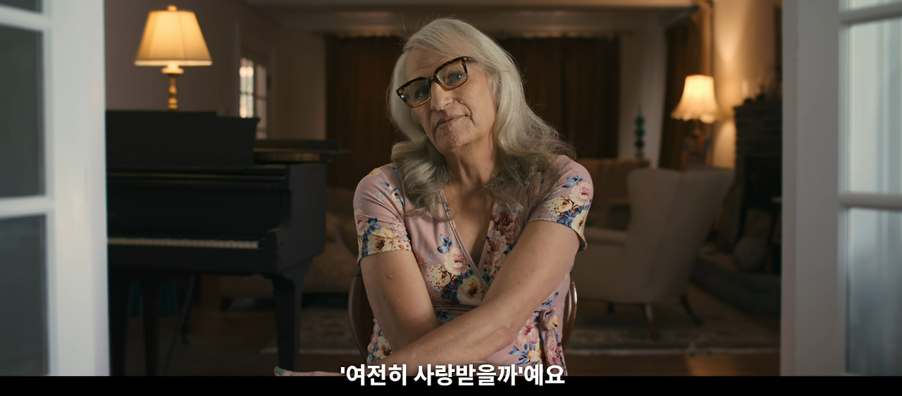 하퍼와 비슷한 나이(60대)의 트랜스 여성을 스크린에서 보는 건 상당히 드문 일입니다. 주류에서 허용되는 트랜즈젠더의 스펙트럼은 일반적으로 그들의 젊음과 아름다움, 화려함에만 집중되니까요. 물론 많은 트랜스젠더, 특히 인생의 후반에 커밍아웃하는 트랜스젠터의 현실은 그렇지 않습니다. 하퍼가 윌과 관객들에게 들려주는 이야기는 엄청난 수치심으로 가득합니다. 몰래 여장을 하는 남편이자 아버지라는 스스로 느끼는 괴리감과 굴욕감, 그리고 누군가에게 도움을 요청했을 때 “그것은 병일뿐”이라는 말을 들었을 때의 수치심이죠.