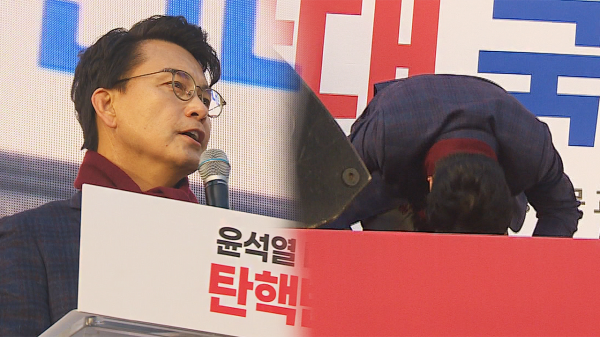 윤석열 탄핵반대 집회에서 큰절하는 국민의힘 윤상현 의원 ⓒ JTBC
