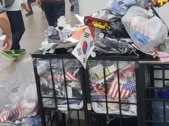 윤석열 탄핵 반대 시위자들이 버리고 간 태극기