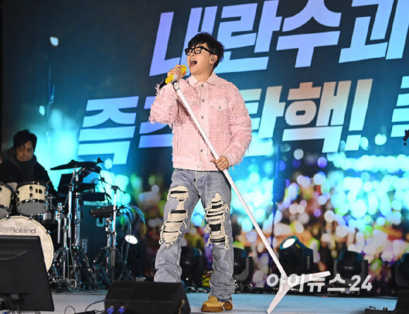 윤석열 탄핵안 가결 촉구 국회 앞 촛불 문화제에서 공연하는 이승환 ⓒ 아이뉴스24