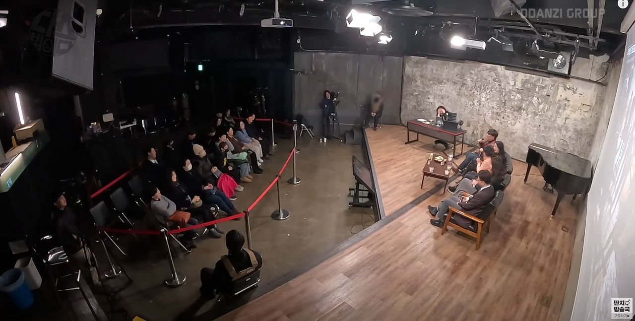 얼마 전 김어준의 <다스뵈이다>를 보다 화면을 멈췄다. 그동안 미처 눈치채지 못한 장면이 눈에 들어왔다. 방청객을 둘러싼 빨간색 안전선이 설치되어 있고, 김어준이 오른 무대 앞 가까이 건장한 두 남자가 모자이크 처리된 채로 쇼 내내 앉아 있다. 경호원들이었다. 대한민국에서 언론인이 경호원을 두고 진행하는 쇼를 내 생에 보게 될 줄은 몰랐다. 그 기괴한 장면은 ‘실패한 내란’의 연속적인 실체였다. 내란은 여전히, 아니 더 극렬하게 진행 중이었다. 무뎌지면 안 된다. 무감각해지면 안 된다.