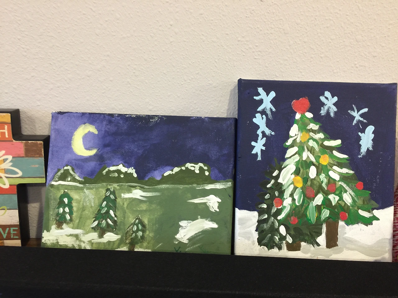 아이들이 스스로 완성한 작품이기에 애착을 갖는 그림이다. 나도 무척 마음에 들어 보관해뒀다가 올해 크리스마스 시즌에도 꺼냈다. 꺼내서 적당한 곳에 놓는 일도 혼자 놀기의 한 과정이다.