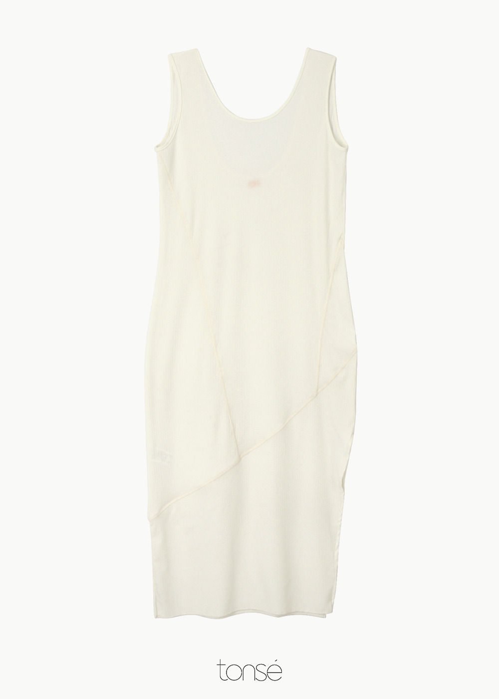 하나하나 라인을 테이프로 잡아 디자인하였던 절개 라인과 배색 스티치가 돋보이는 오르페 슬리브리스 드레스. 텐션감 좋은 골지 원단과 사이드 슬릿을 과감히 파내어 활동성을 더해주었다. 스커트만 입어도 유연하게 살아나는 라인과 부담스럽지 않은 핏이 멋스러움을 더해주지만, 부담스럽다면 이너와 함께 착용하거나 내 멋대로 레이어드 조합을 찾아보길! *블랙 드레스 모델 컷은 뒷부분을 앞으로 착용한 것인데.. 이질감 전혀 없고.. 투웨이로도 입 수 있다. 활용도 최상.