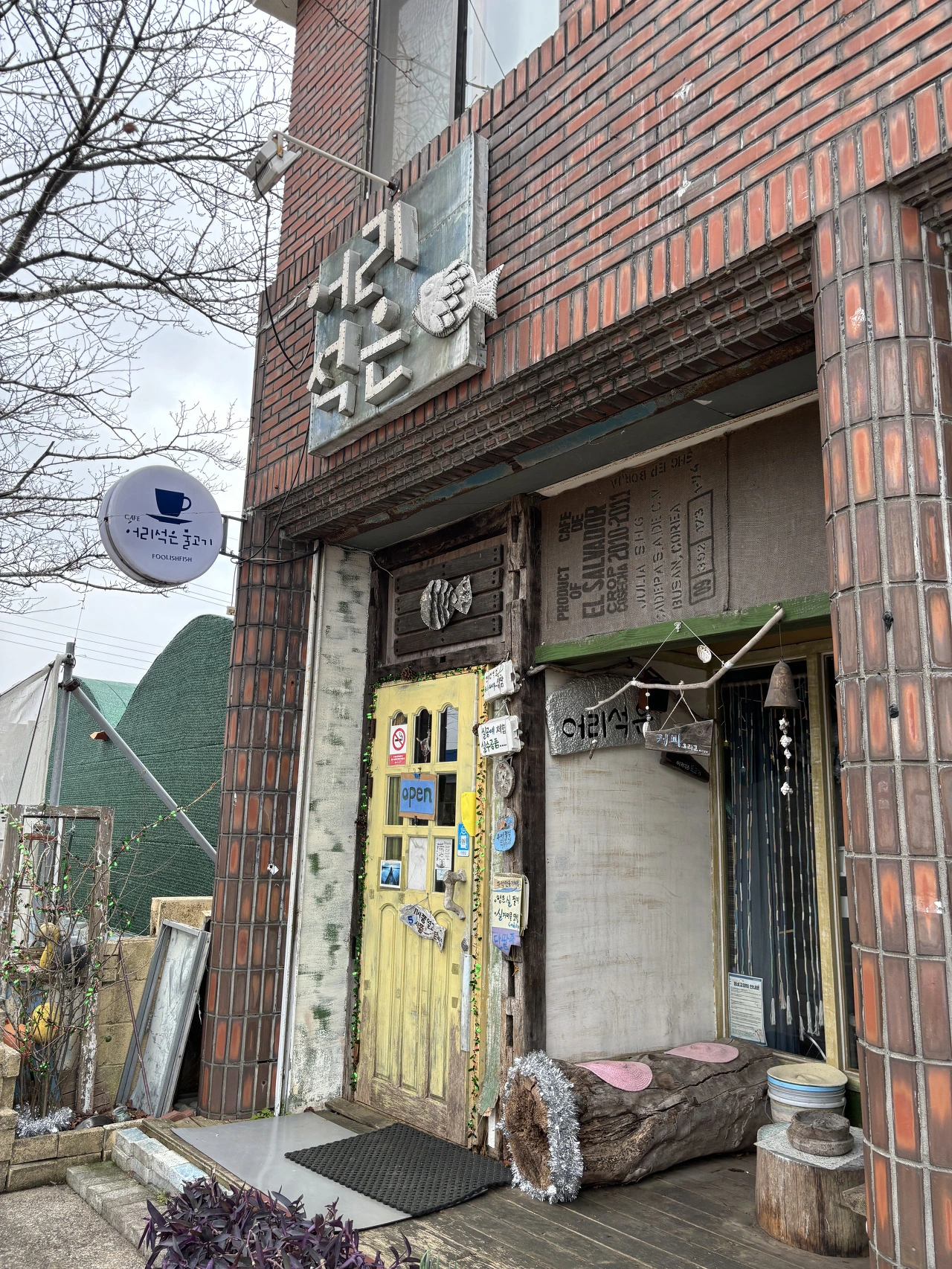 버스를 타서는 졸았습니다. 몸이 약간 뻐근하고 개운하지 않아서 노래를 들으며 쉬었네요. 1시간 정도 버스를 타고 이동했더니 위미에 도착했습니다. 도착해서 어리석은 물고기를 향해 걷는데 갑작스럽게 책방을 만났습니다. 독립서점은 서점 주인의 메모를 보는 게 별미입니다. 빈티지샵도 같이 있었는데 12월 31일 자로 문을 닫는다고 전부 50% 세일을 하고 있었습니다. 무언가를 살까 고민했지만 짐이 많아지는 게 힘들 것 같아 깔끔하게 포기했습니다. 2분 정도 더 걸으니 어리석은 물고기를 드디어 만날 수 있었습니다. 제주에 온 이유가 딱히 있는 건 아니지만 그나마 꼽자면 이곳이 있었습니다. 어리석은 물고기. closed가 아니길 간절히 빌며 다가갔더니 open을 마주할 수 있었습니다. 문을 열었습니다.