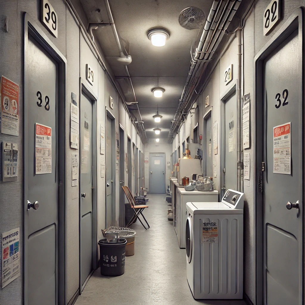 두피에서 1cm 정도로 깔끔하게 머리를 정리하고, 중간중간 흰머리가 희끗희끗. 갈색의 약간 각진 뿔테안경을 쓴 관리자분이 나왔다. 옷은 나름 깔끔하게 셔츠와 체크무늬 카디건 조합이었다. 고시원의 느낌은 건물에서 느꼈던 느낌과 동일했다. 어두컴컴하고도 넓었다. 모든 방들이 창가 쪽으로 나 있어서 복도가 어두웠다. 마치 두더지가 된 것 같았다.